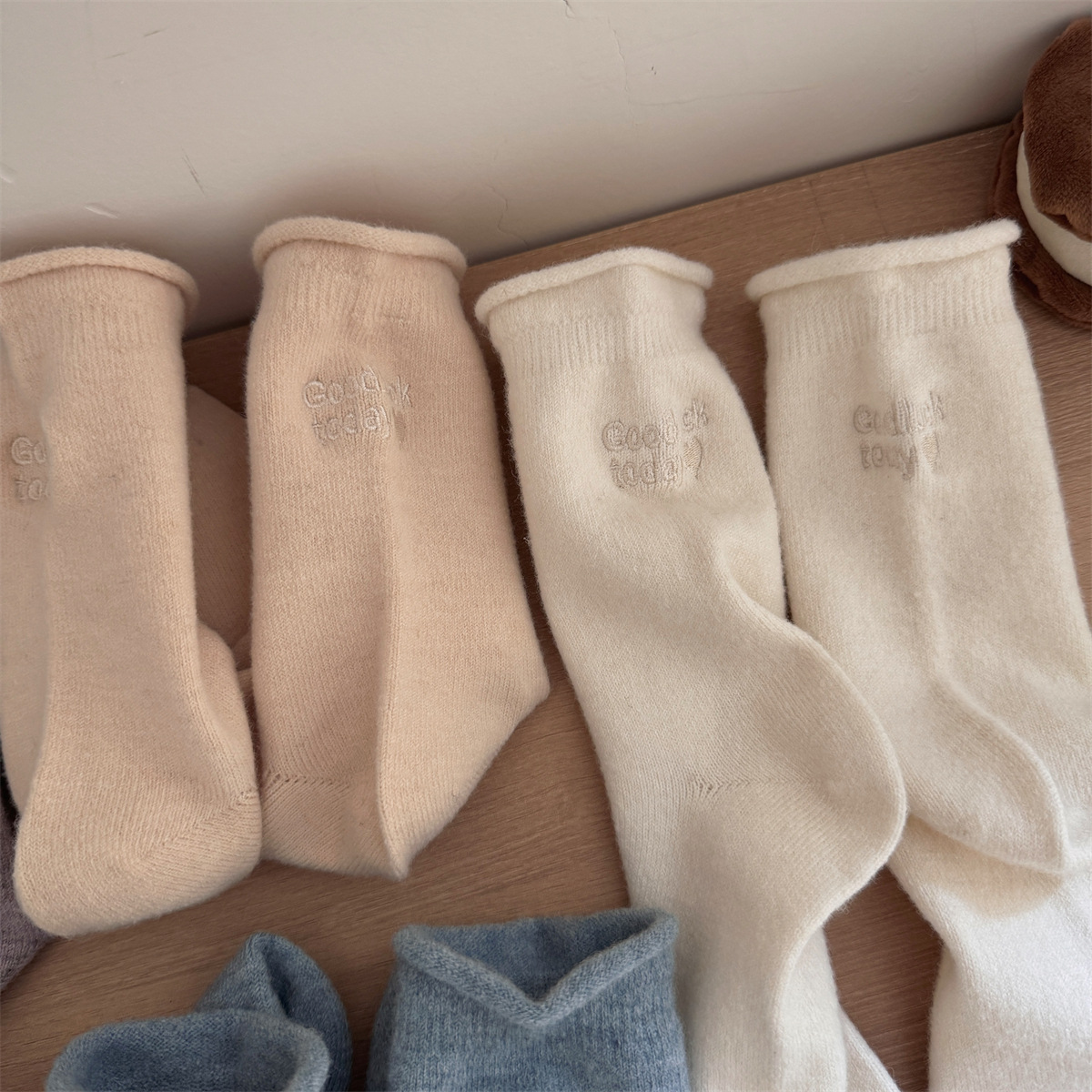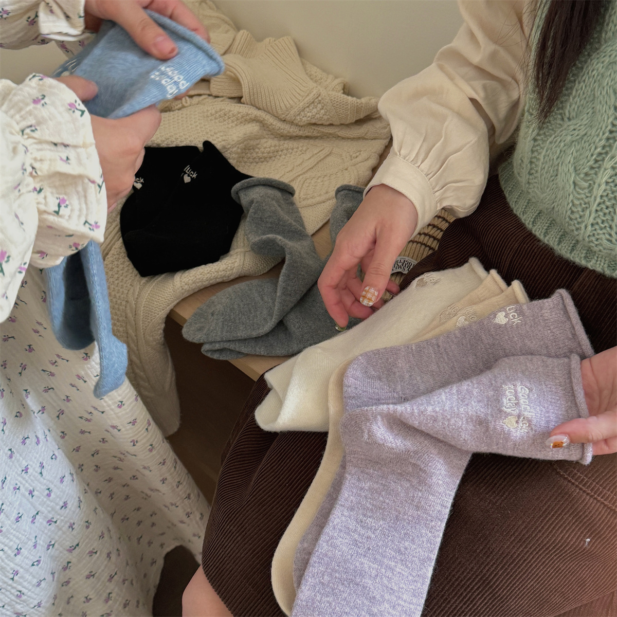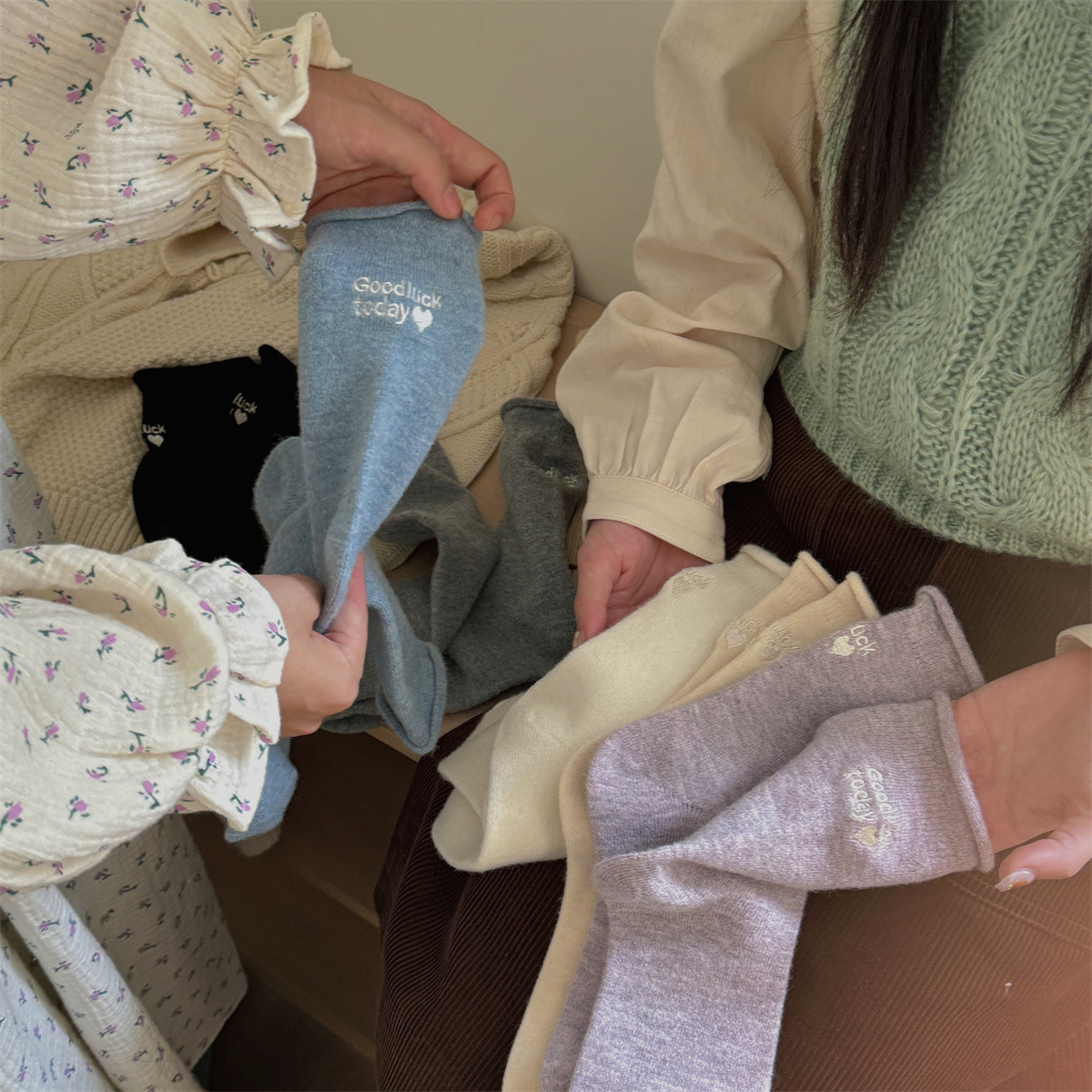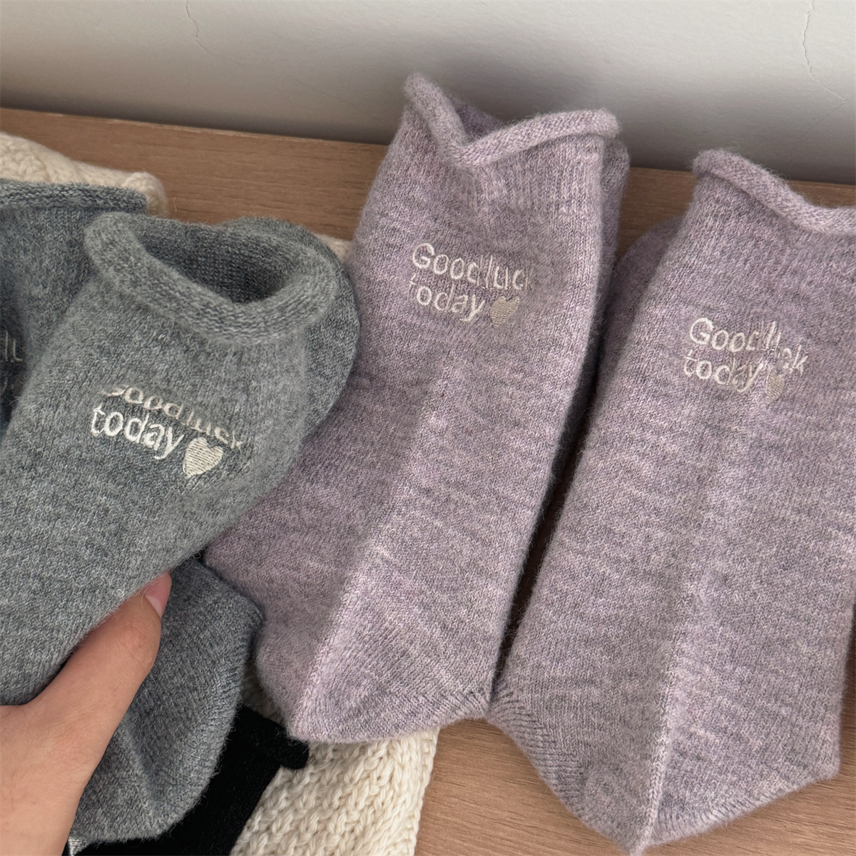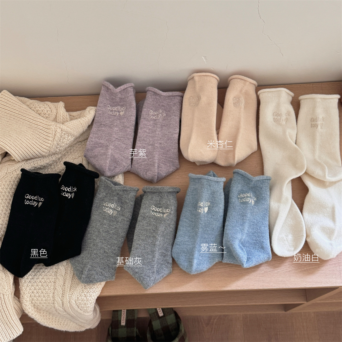 IOULOR新商品日系GOODLUCK巻き縁ウール靴下秋冬柔らかいモチモチ保温靴下諸及び靴下女