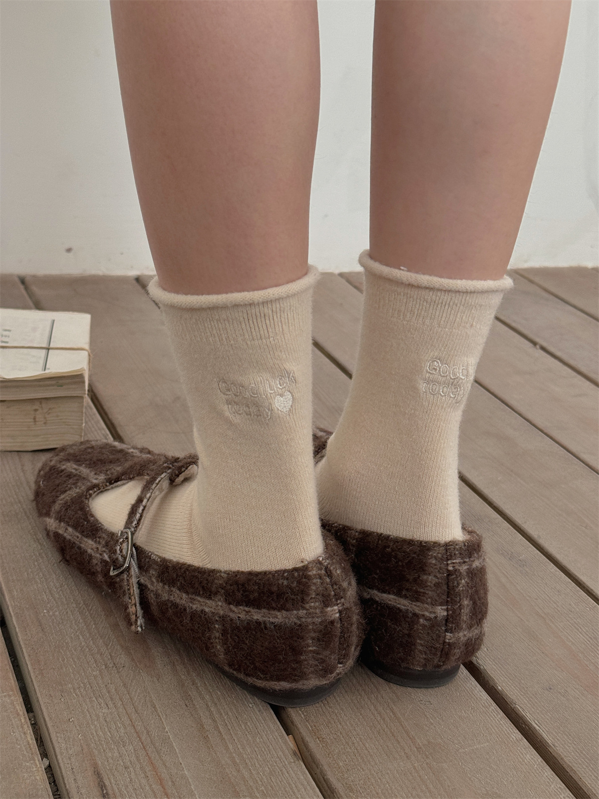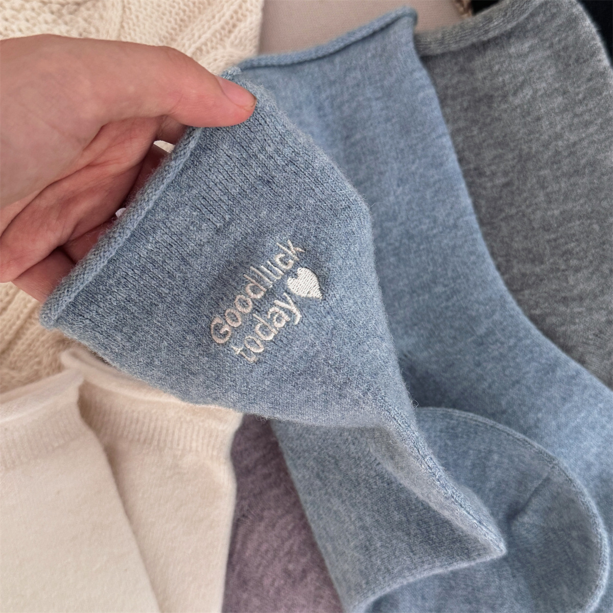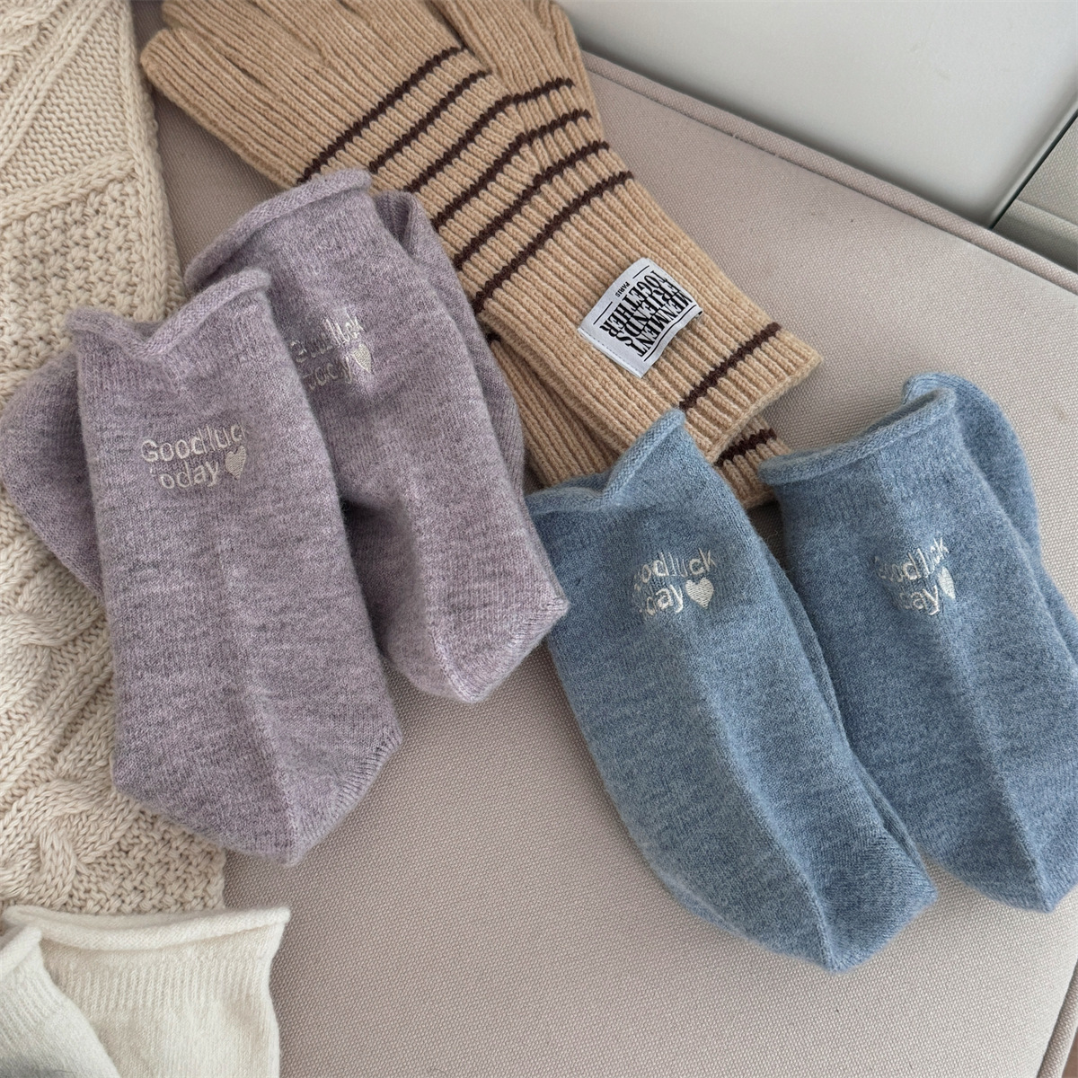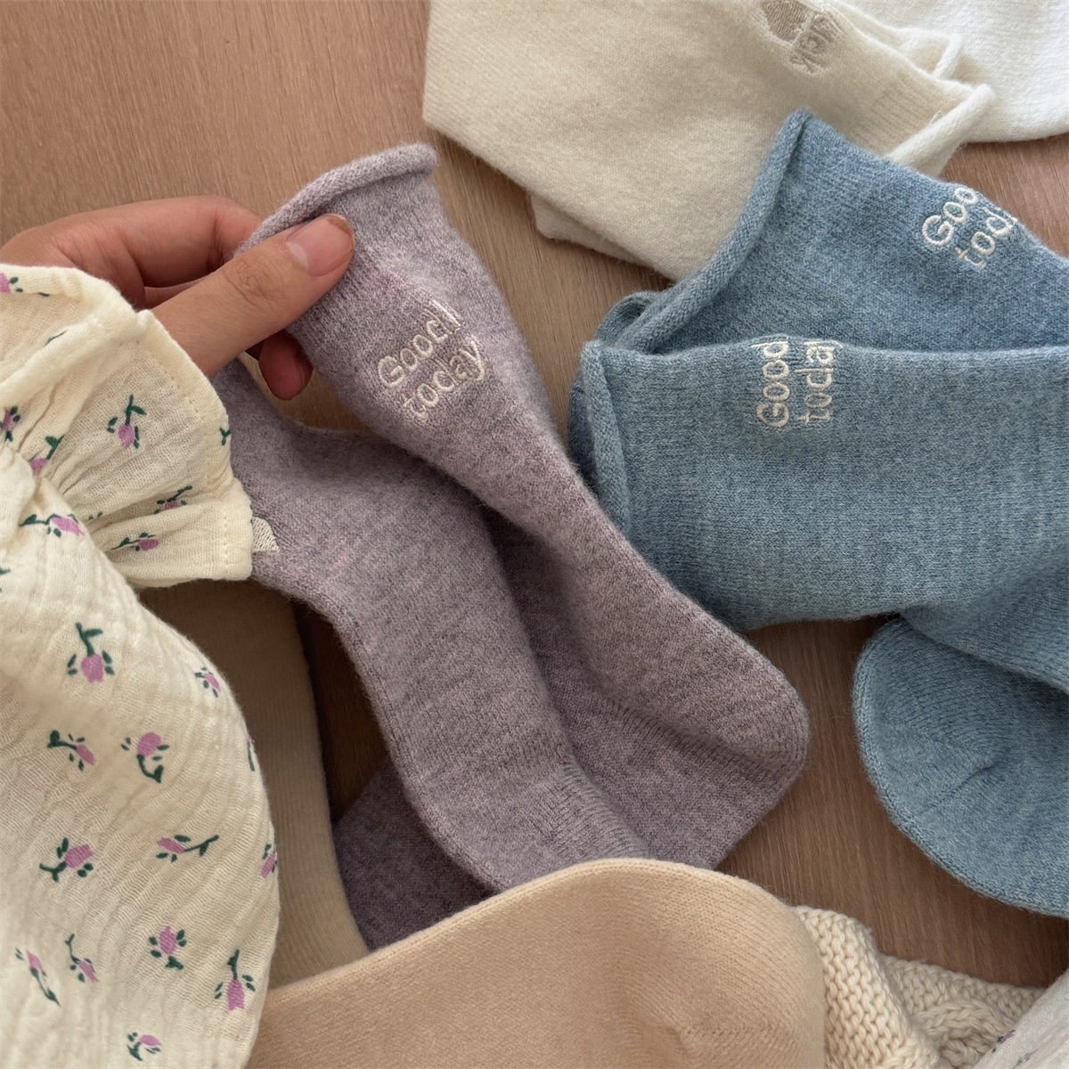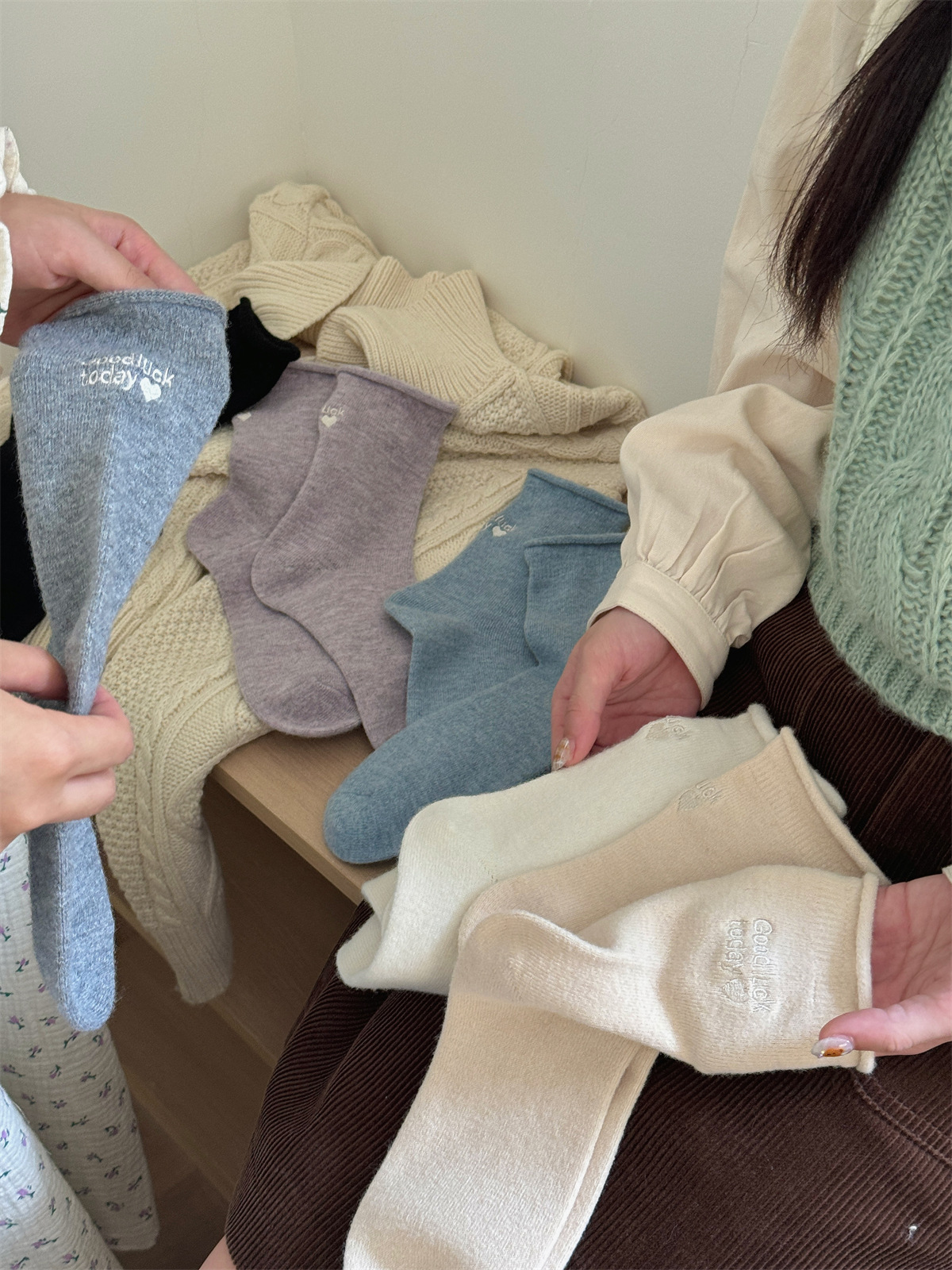 IOULOR新商品日系GOODLUCK巻き縁ウール靴下秋冬柔らかいモチモチ保温靴下諸及び靴下女