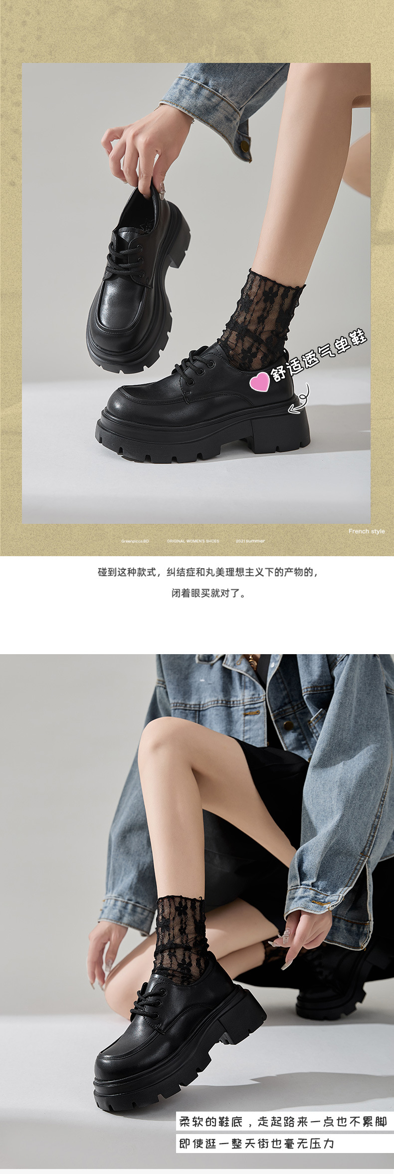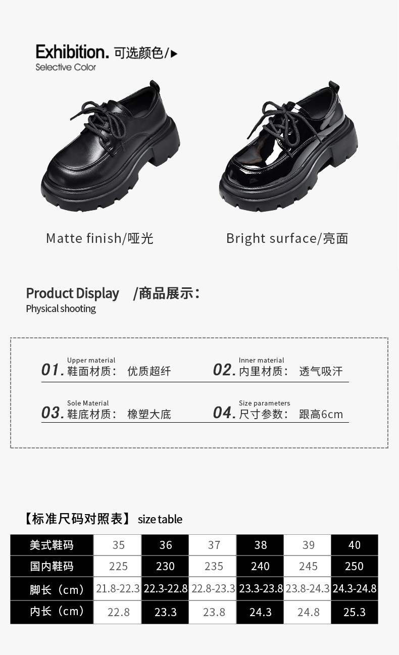 女性の靴の小さい革靴のひもの厚い底の女性の2024秋冬の新型の爆発のメアリー珍の女性の靴の英倫の楽福の靴の女性