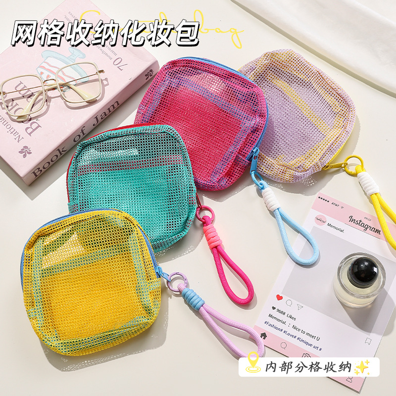 新款多巴胺网格收纳包旅行必备随身便携涤纶隔层化妆品收纳豆腐包
