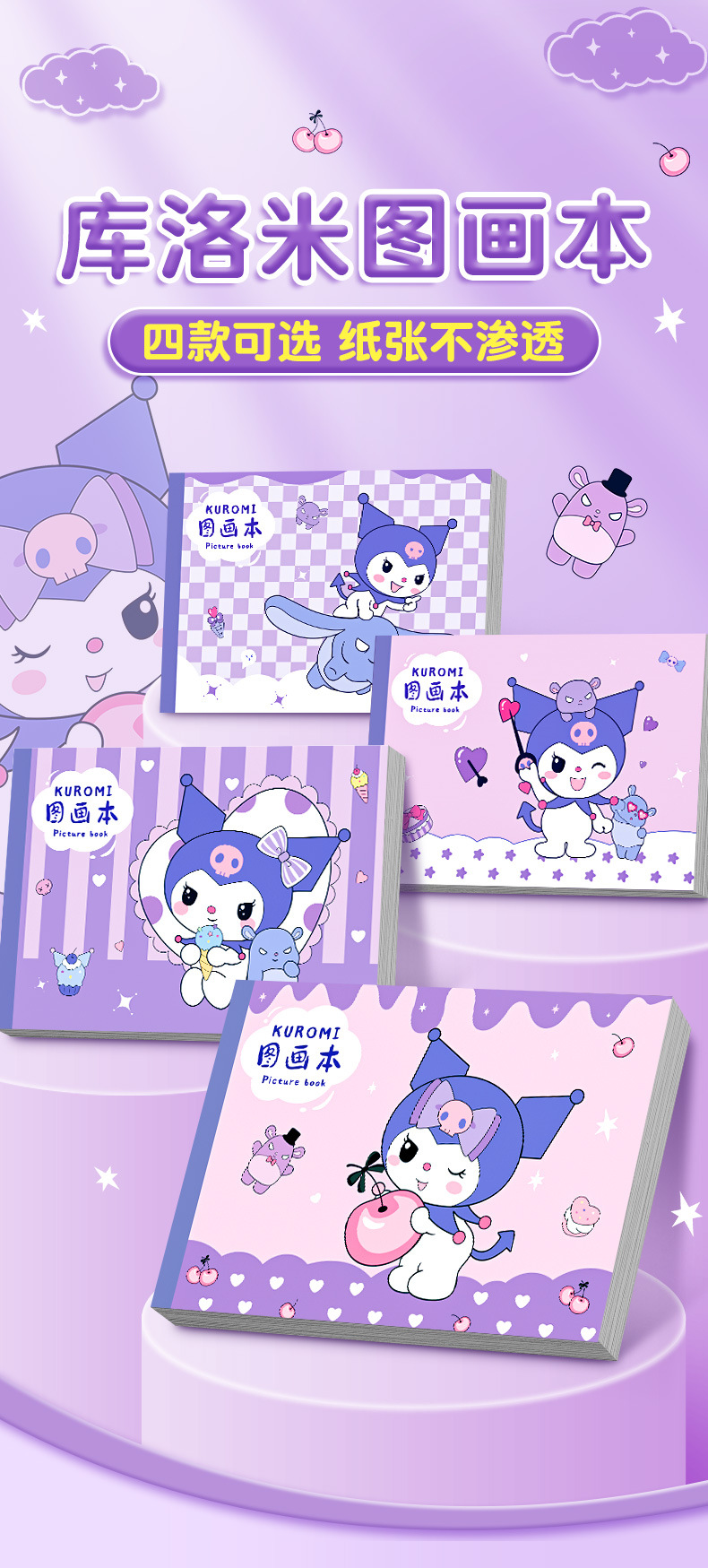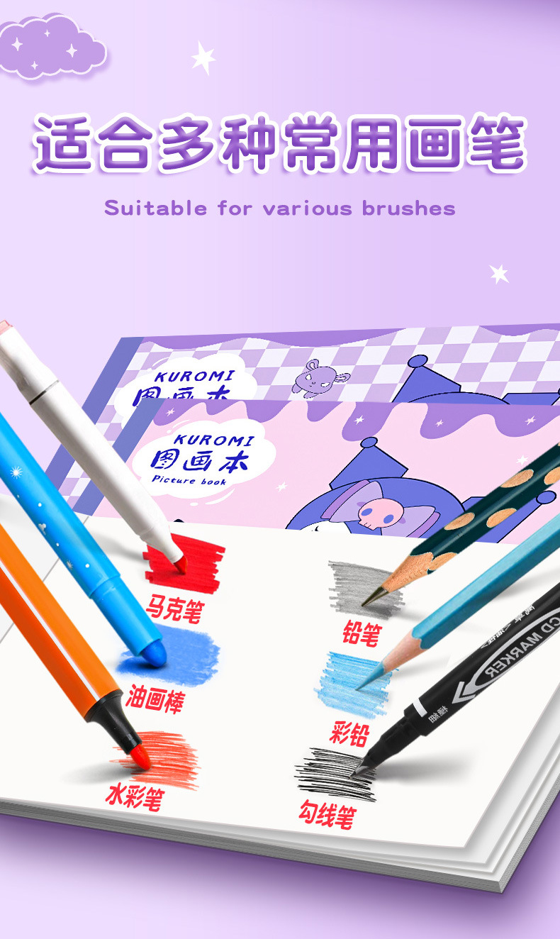 新款三丽鸥图画本创意库洛米美乐蒂戴贴纸绘画本学生高颜值素描本