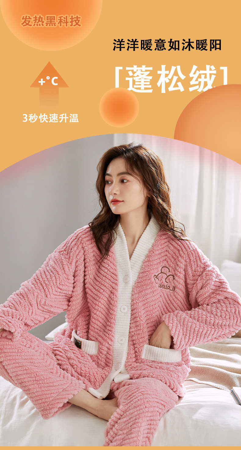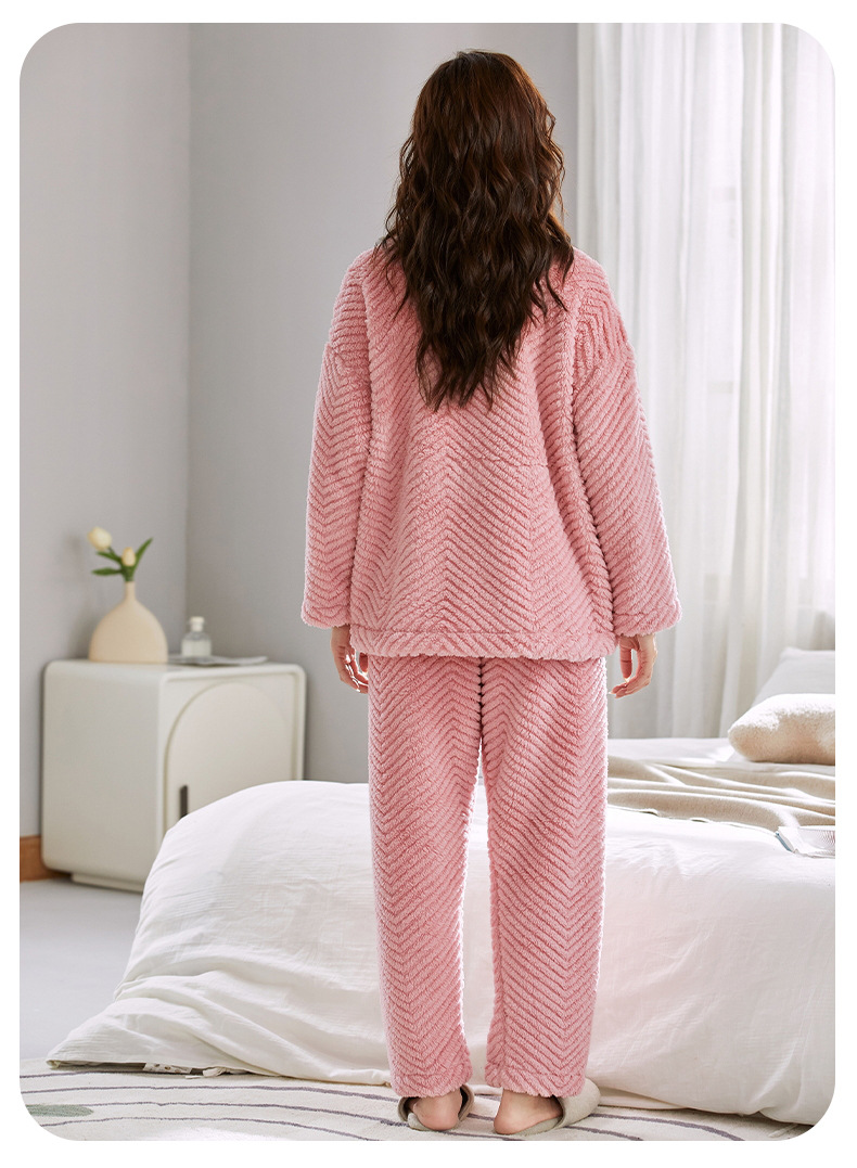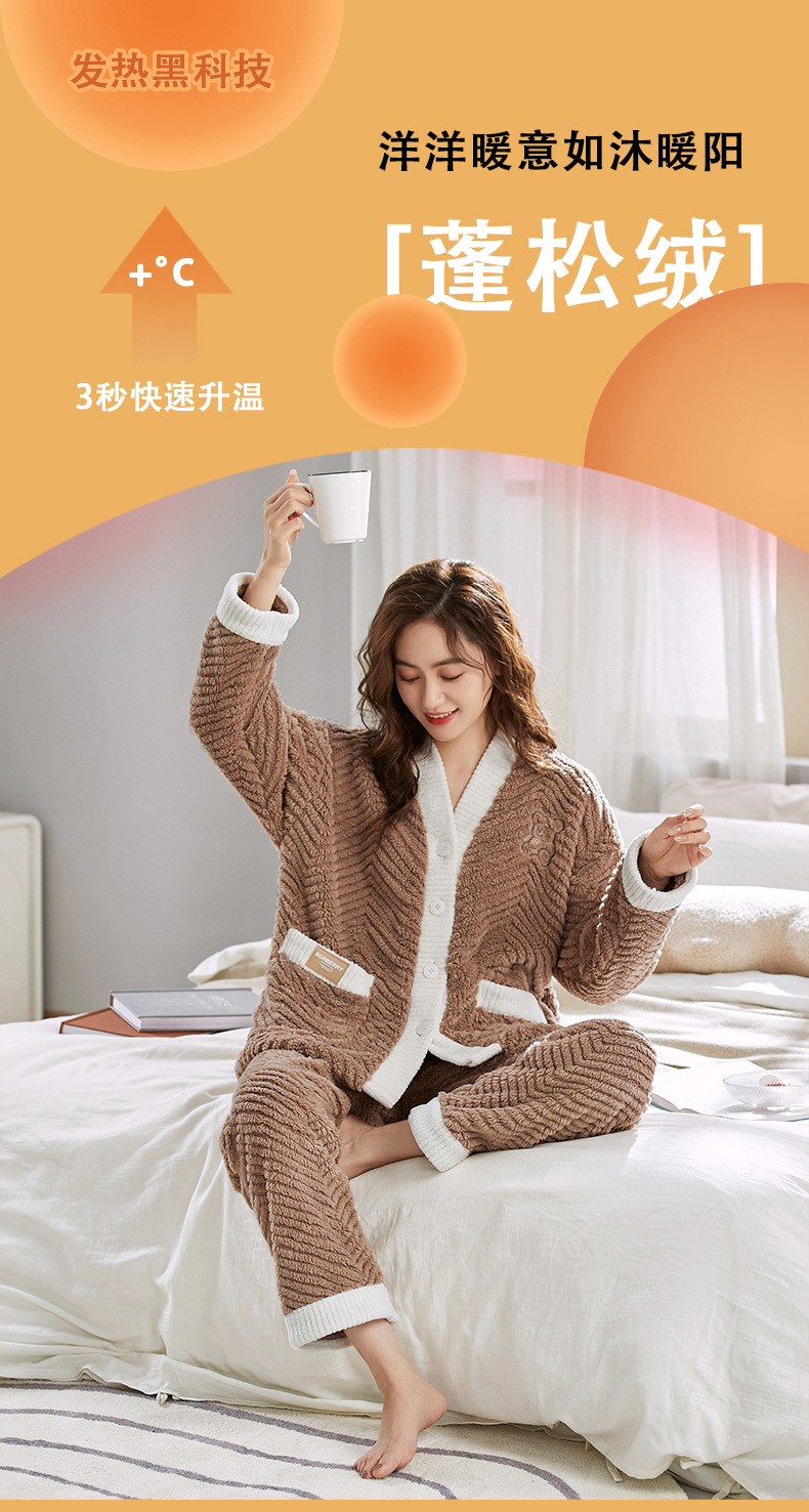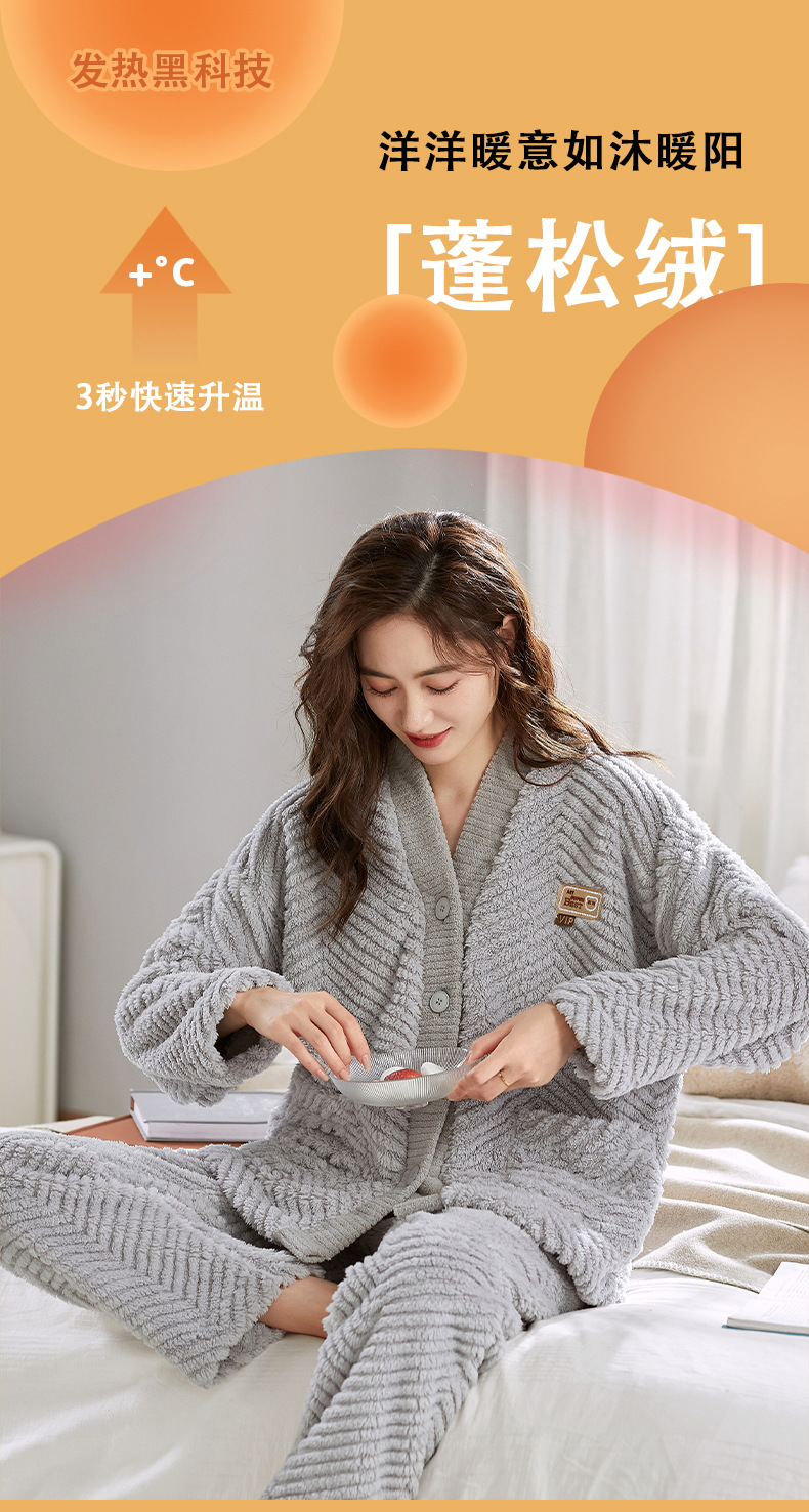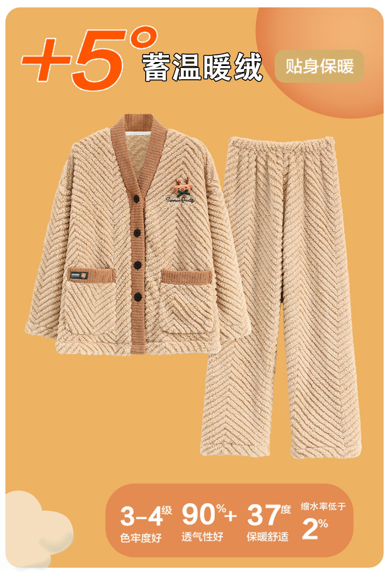 ベルベットカップルパジャマ男女冬にベルベットを厚くして保温カジュアルなカーディガンフランネルの家庭服セット