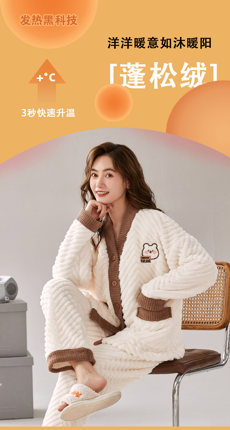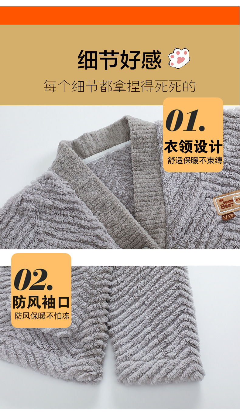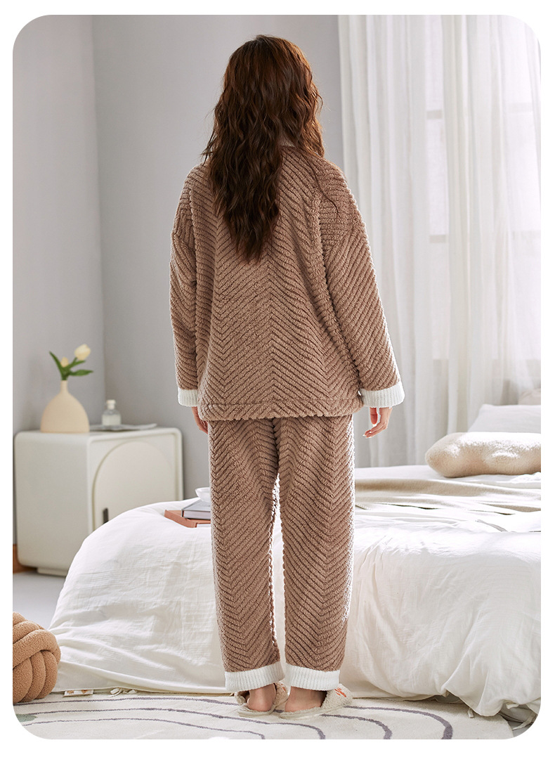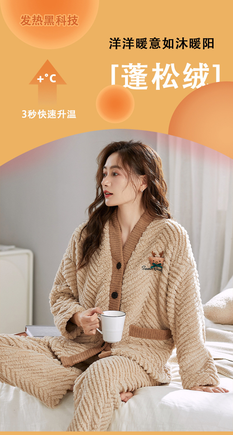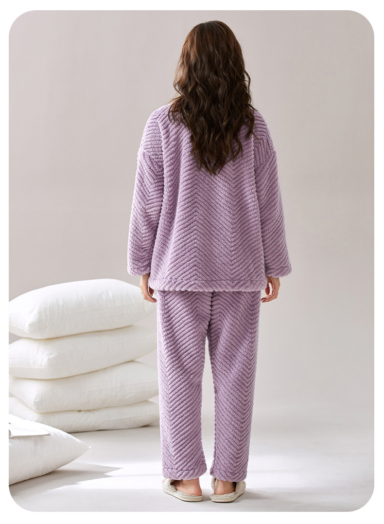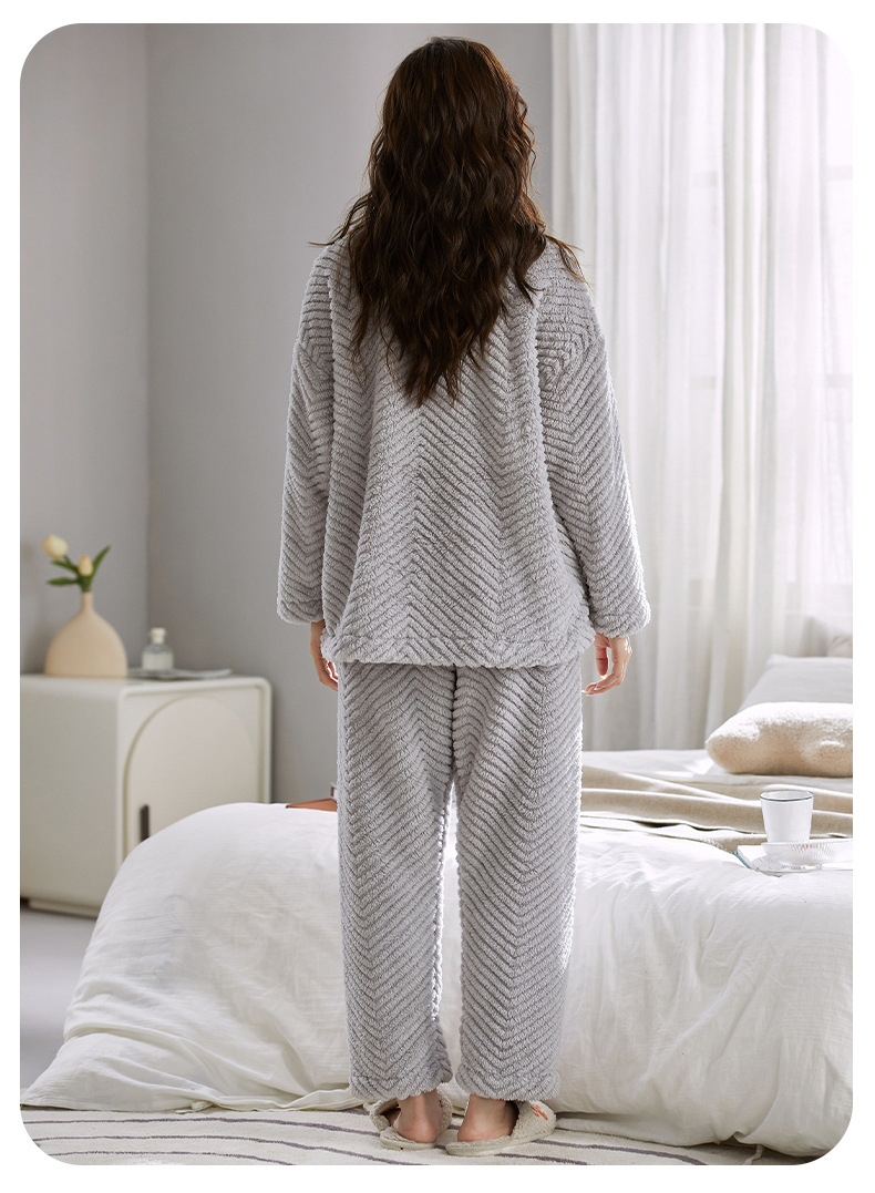 ベルベットカップルパジャマ男女冬にベルベットを厚くして保温カジュアルなカーディガンフランネルの家庭服セット