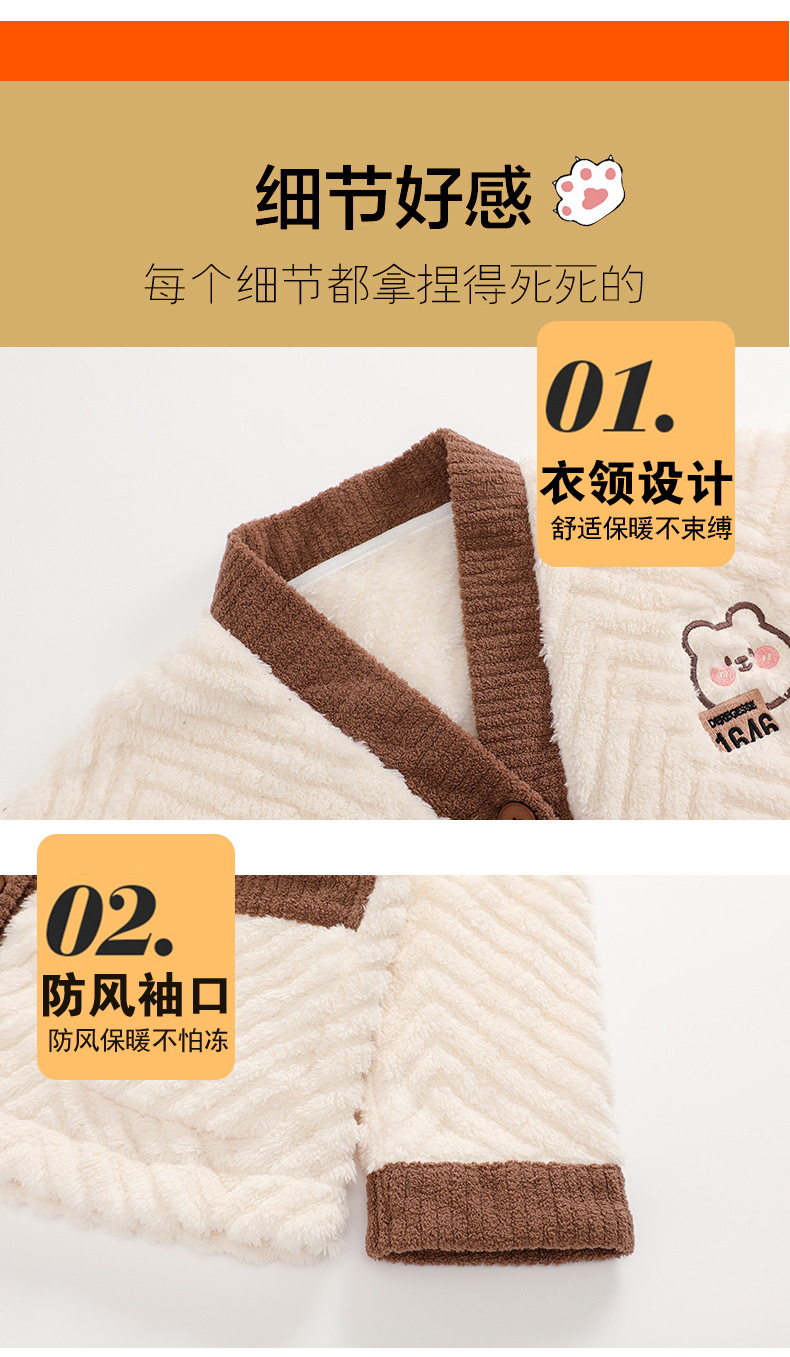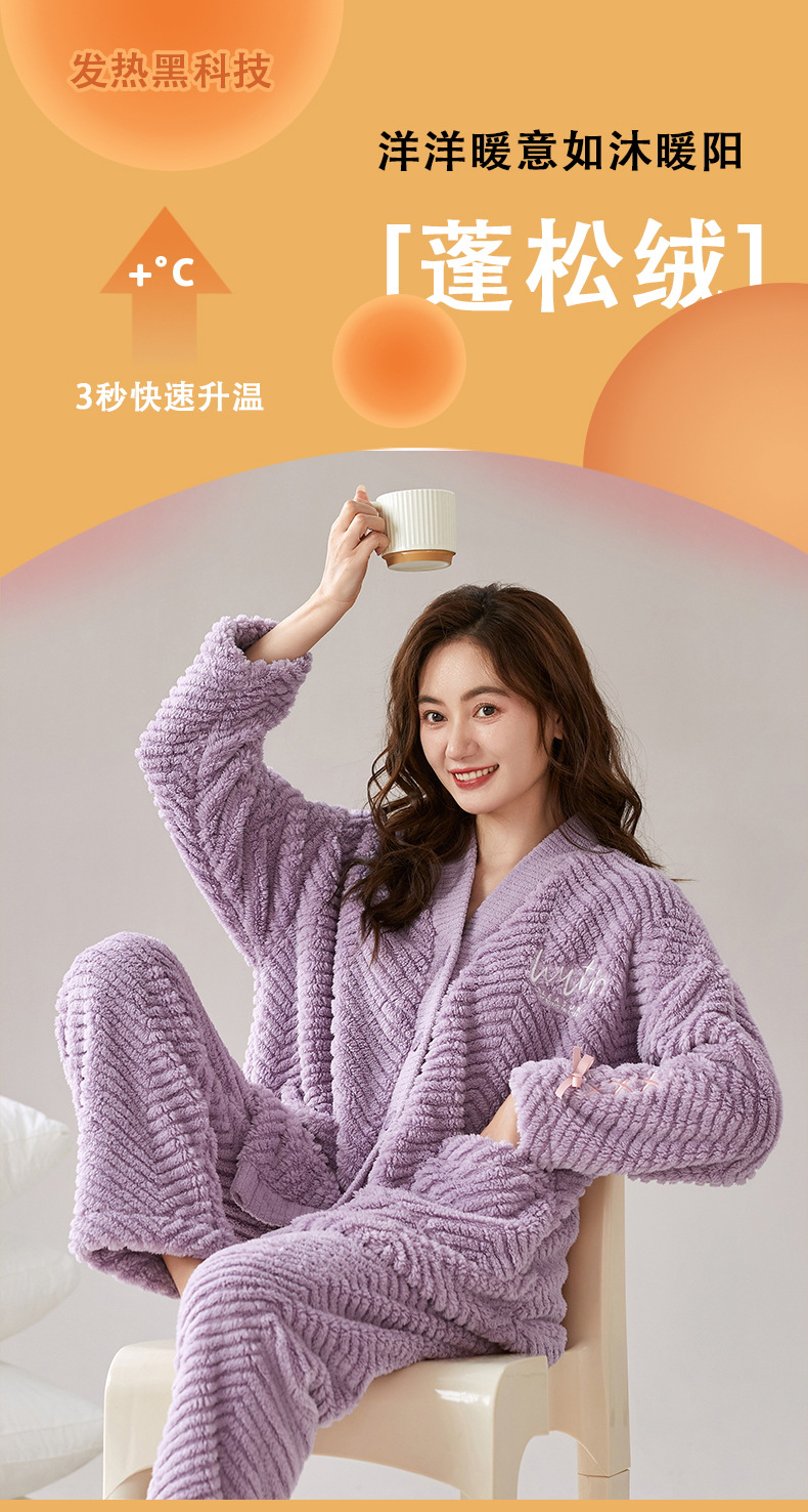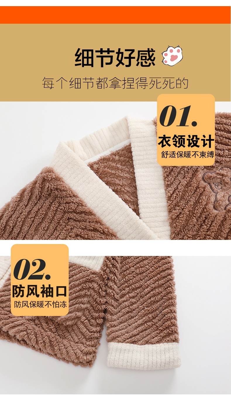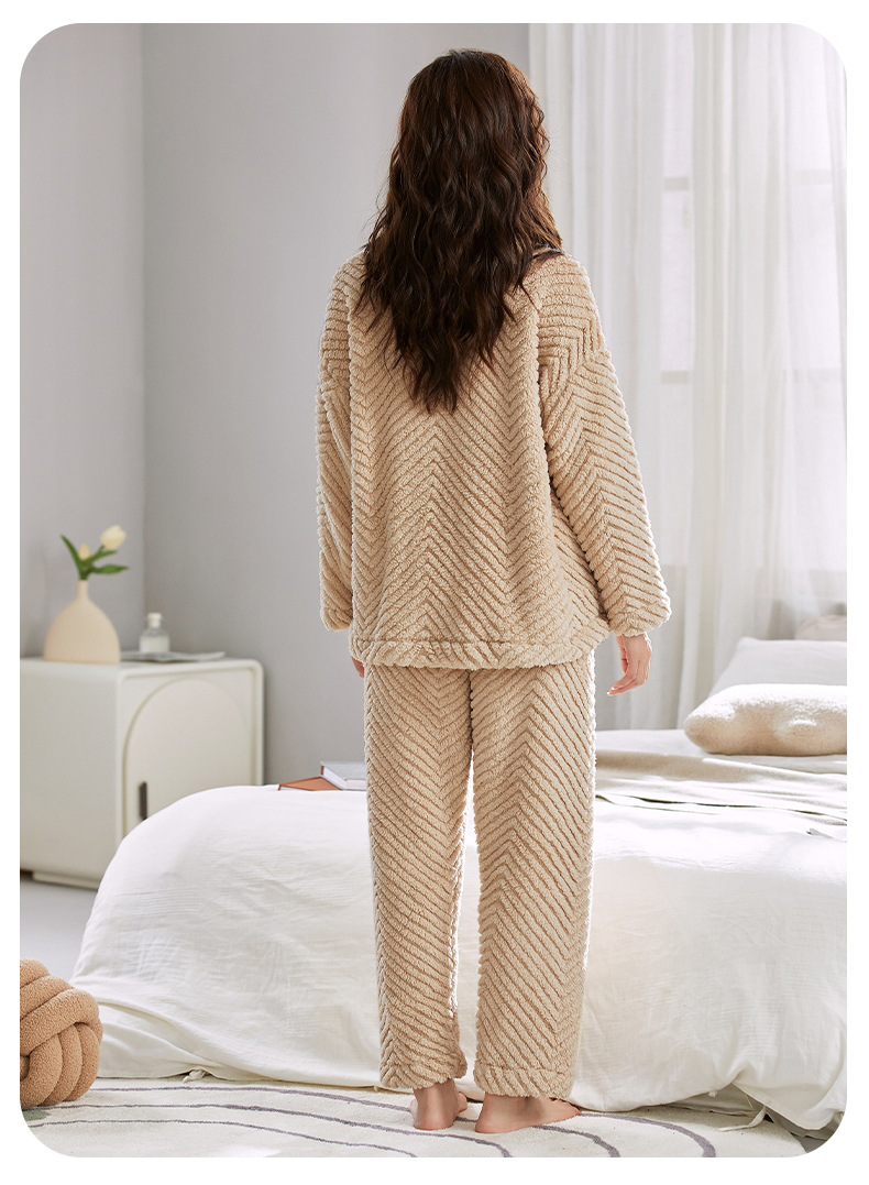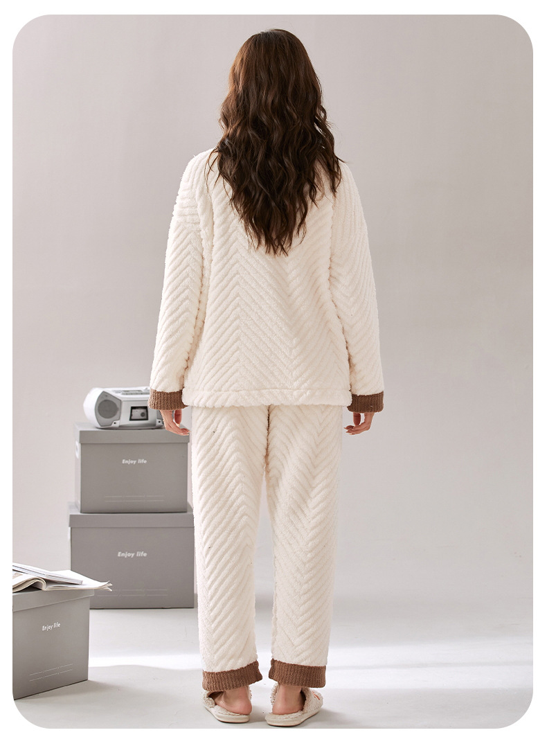 ベルベットカップルパジャマ男女冬にベルベットを厚くして保温カジュアルなカーディガンフランネルの家庭服セット