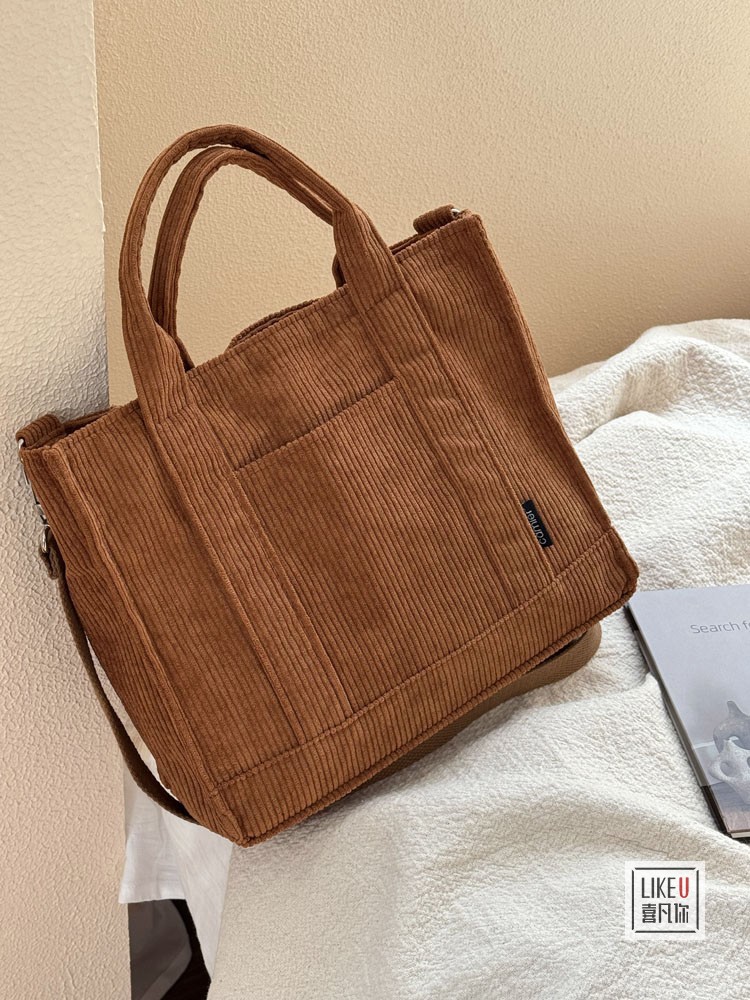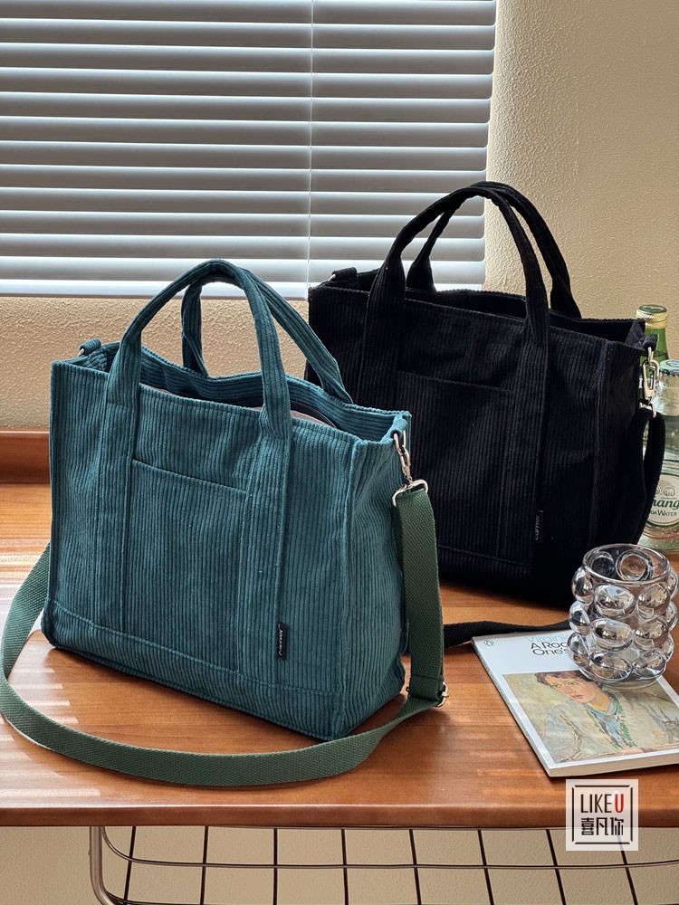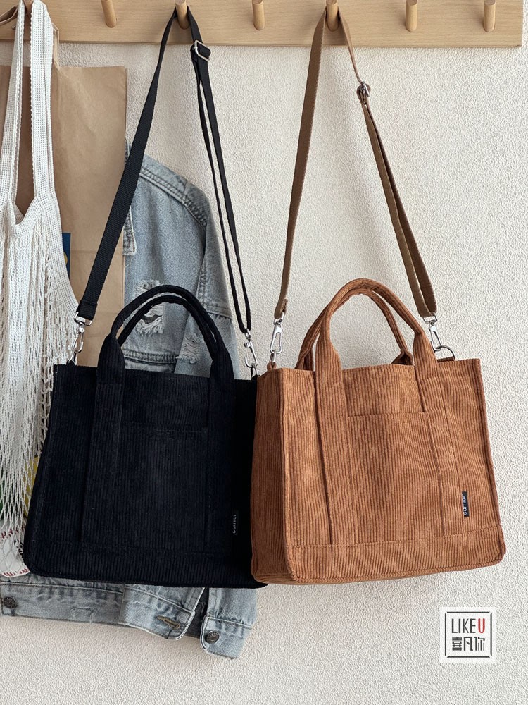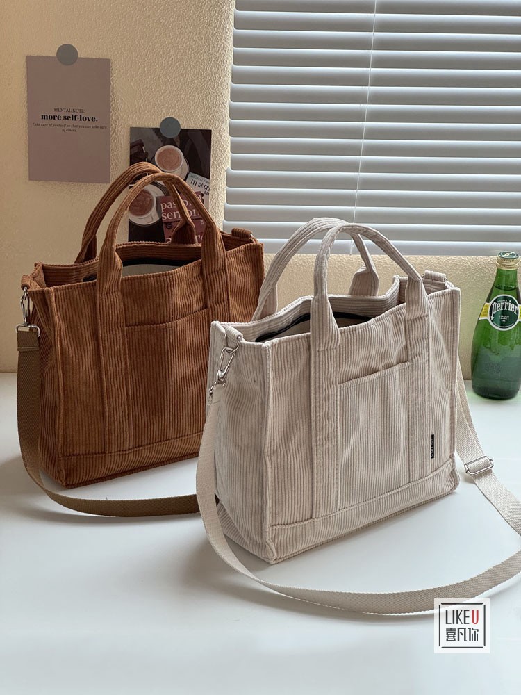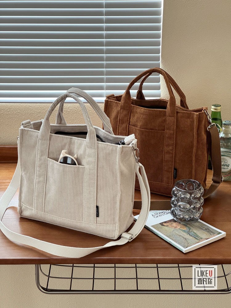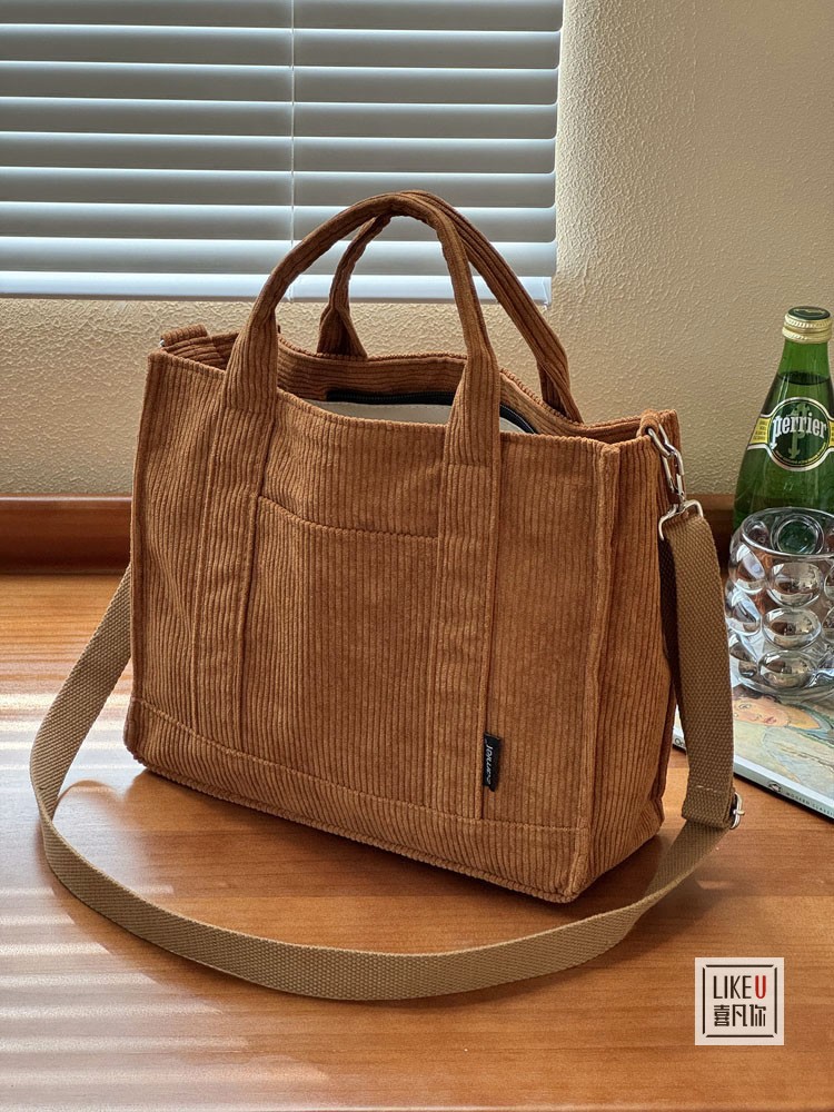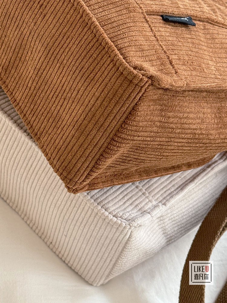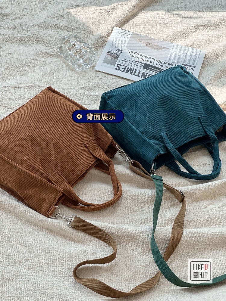 加厚复古文艺灯芯绒学生单肩斜挎托特简约休闲大容量通勤帆布包袋