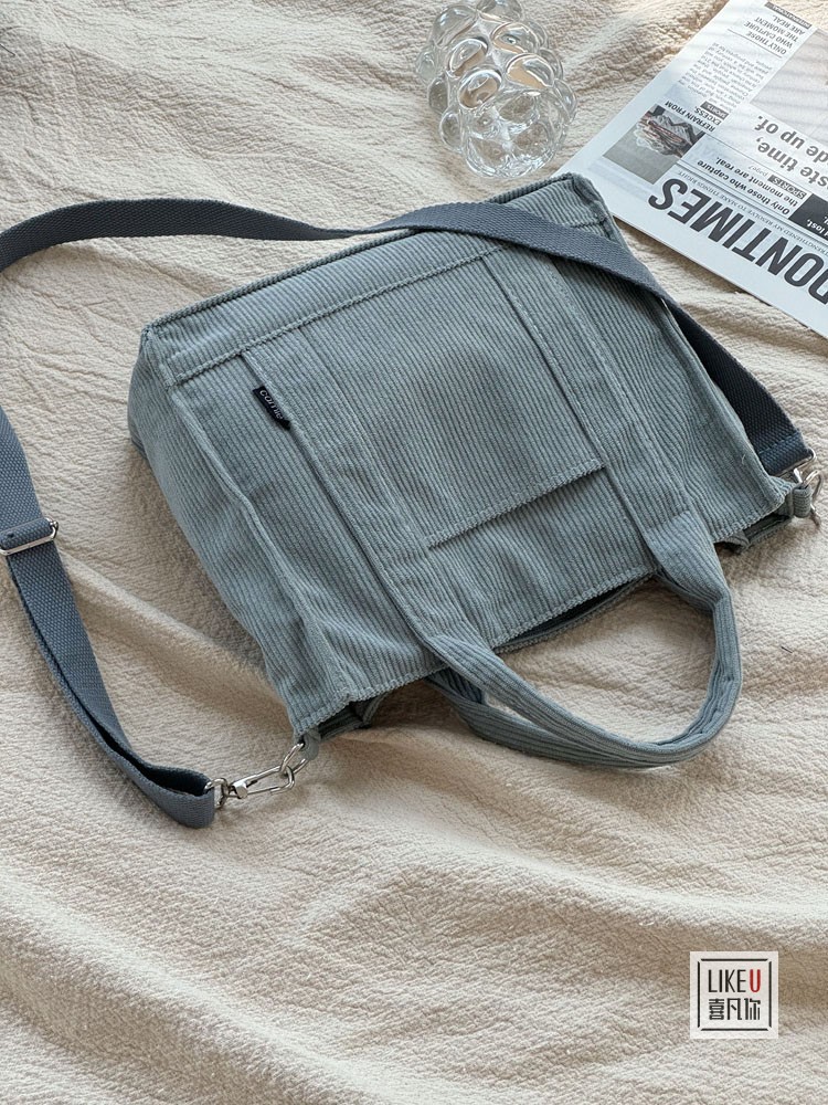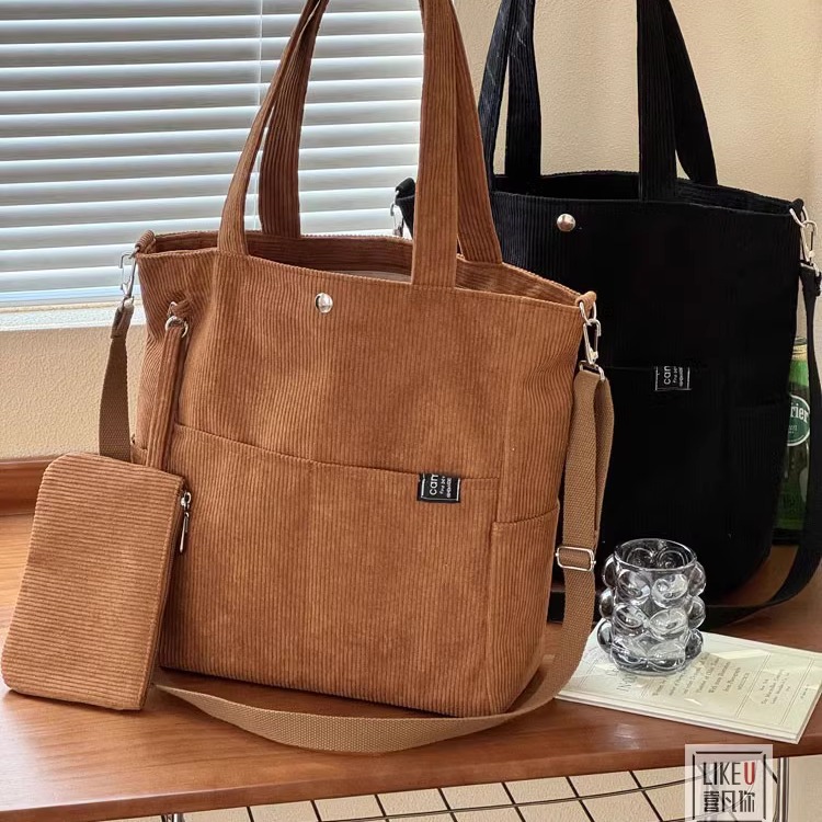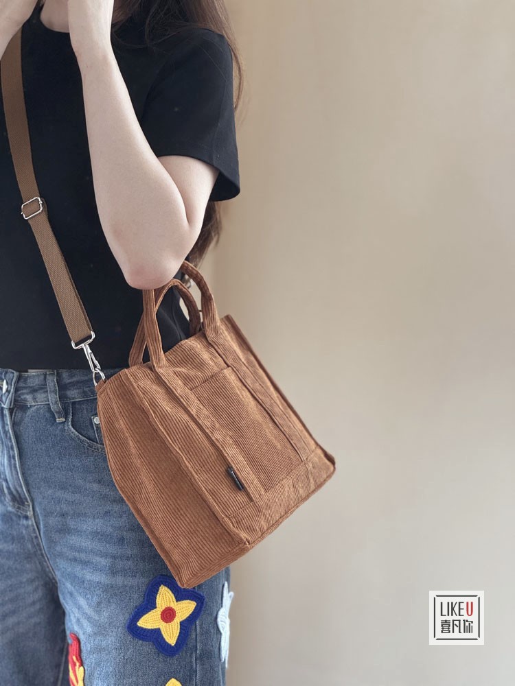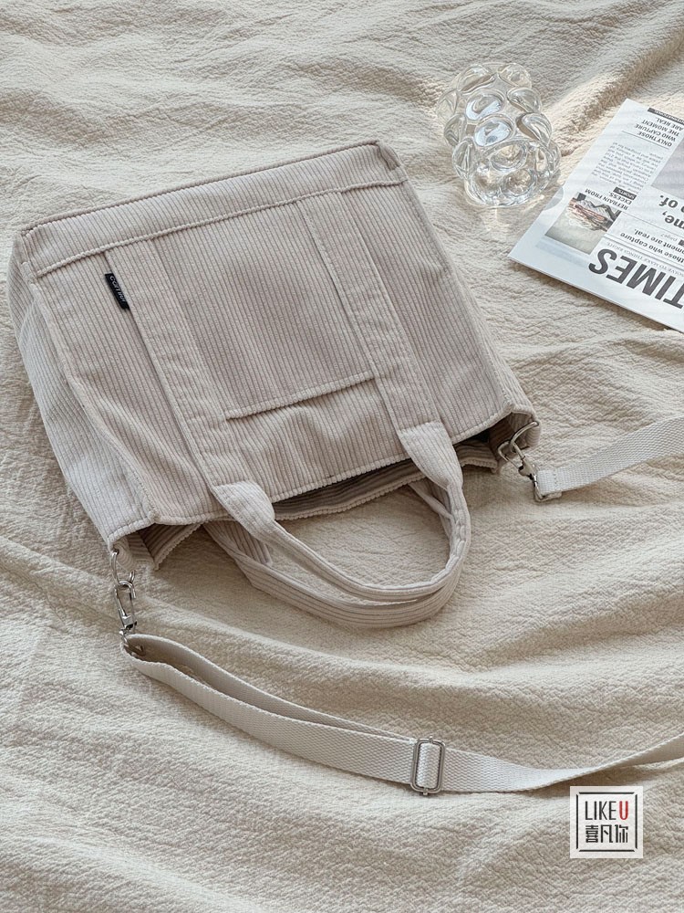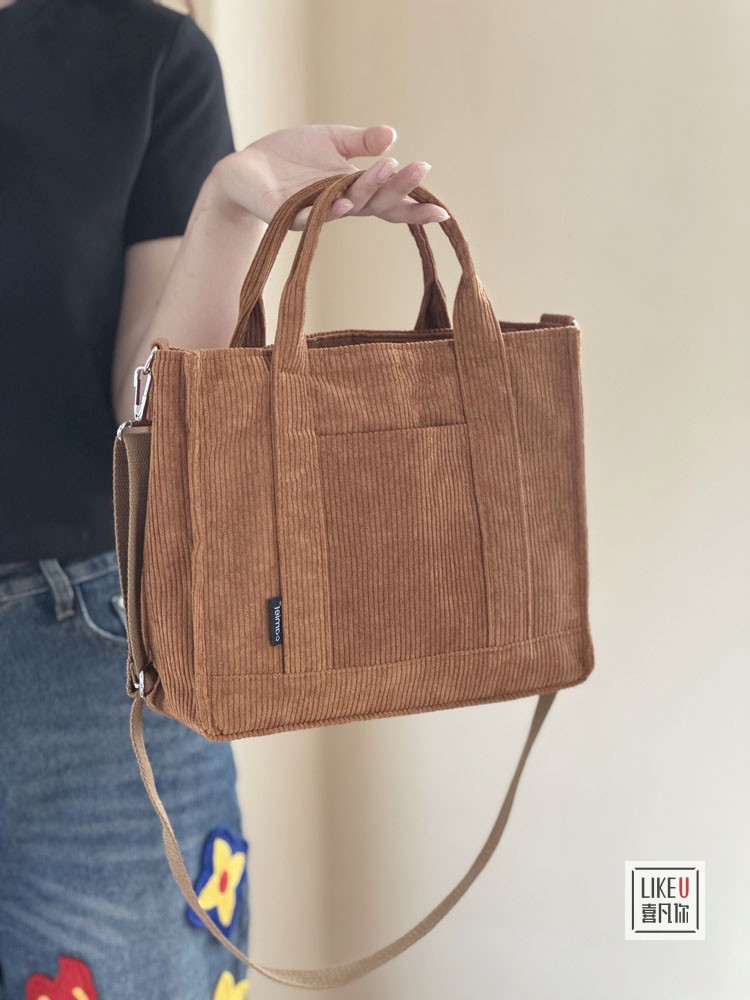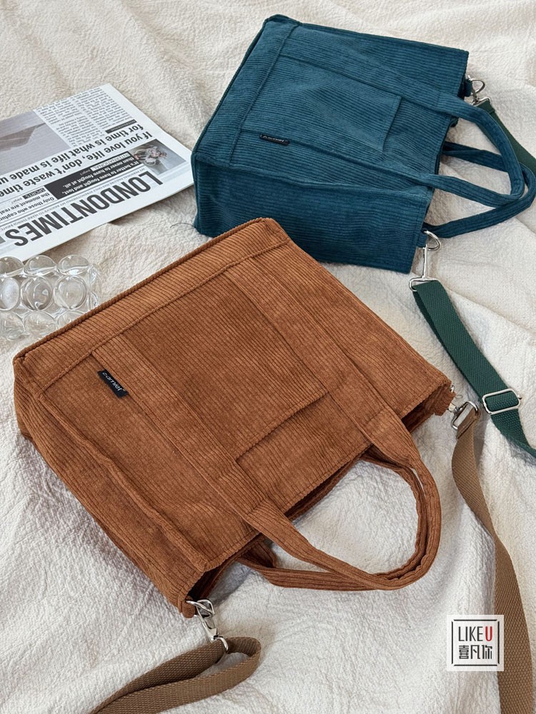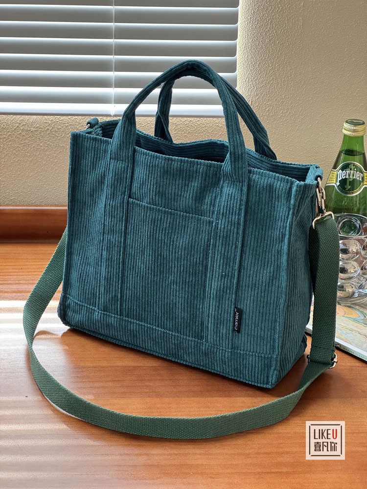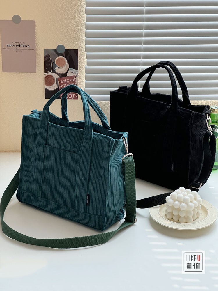 加厚复古文艺灯芯绒学生单肩斜挎托特简约休闲大容量通勤帆布包袋