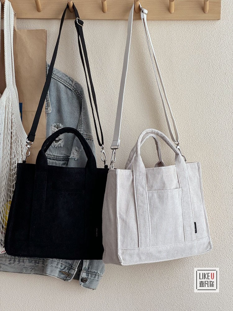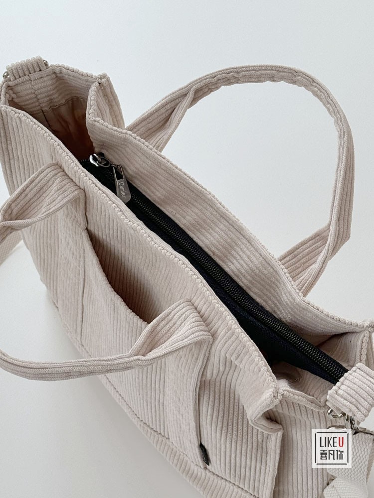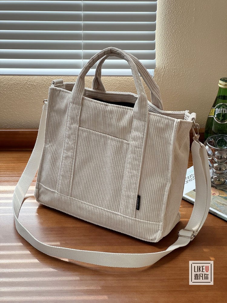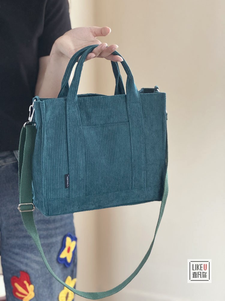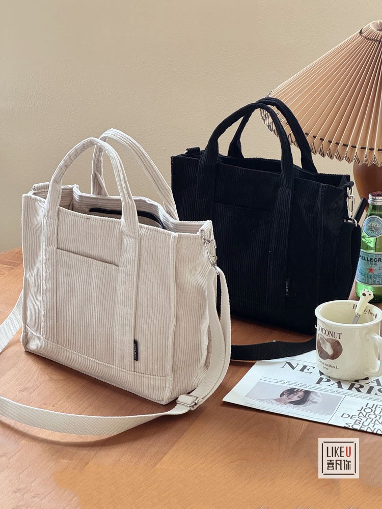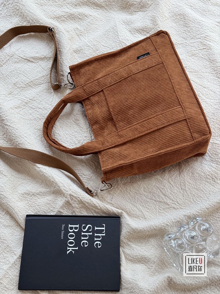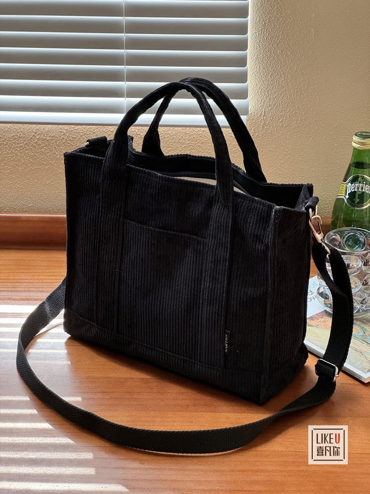 加厚复古文艺灯芯绒学生单肩斜挎托特简约休闲大容量通勤帆布包袋