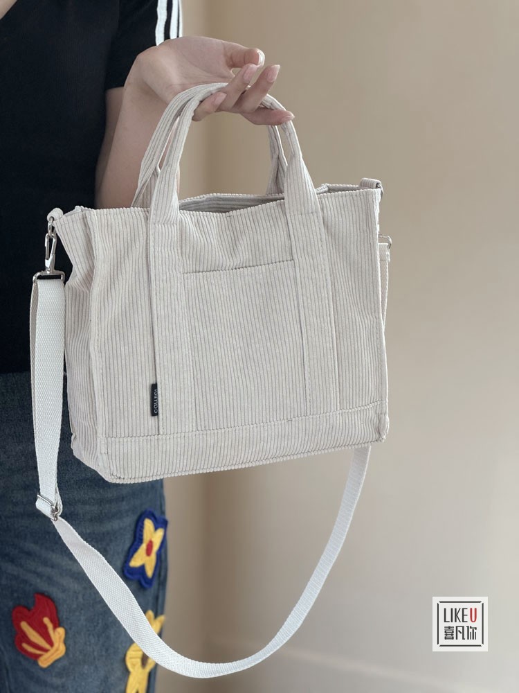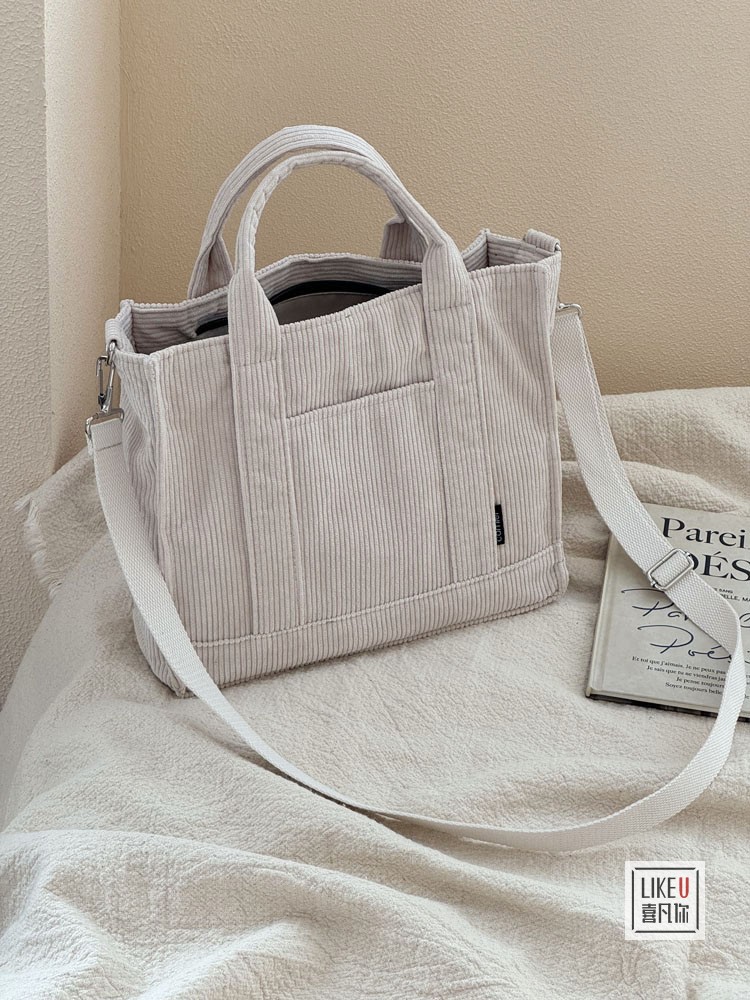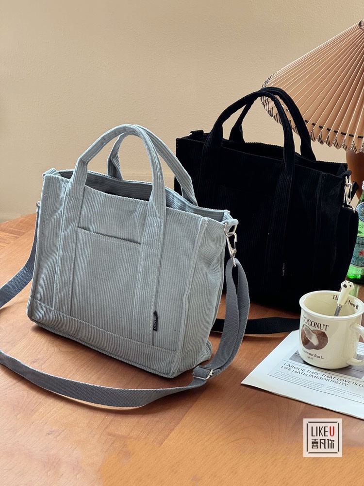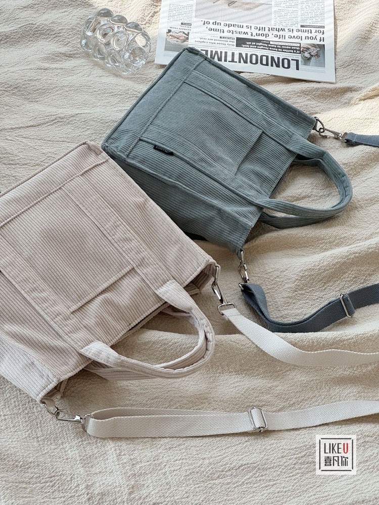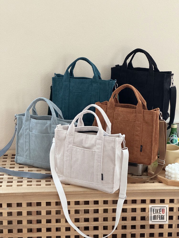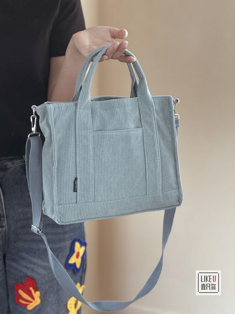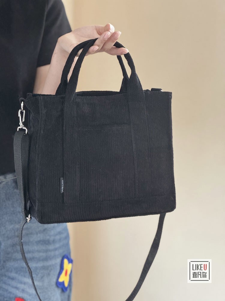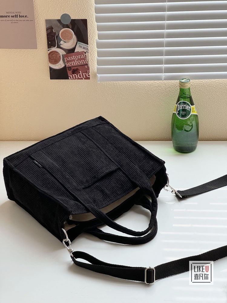 加厚复古文艺灯芯绒学生单肩斜挎托特简约休闲大容量通勤帆布包袋