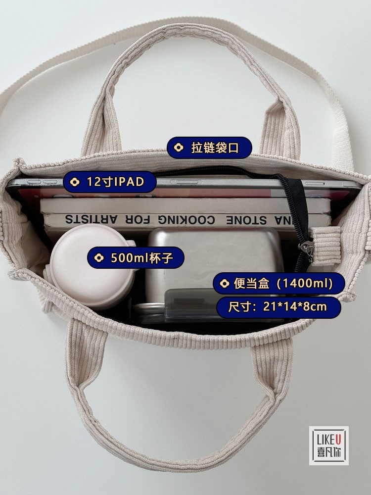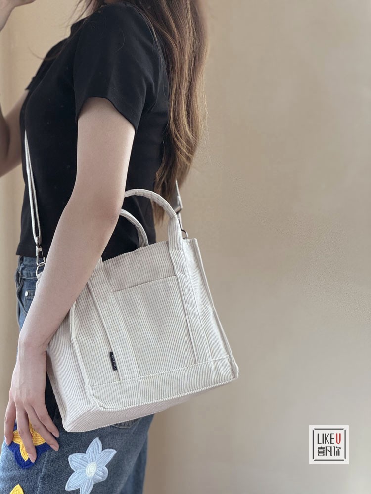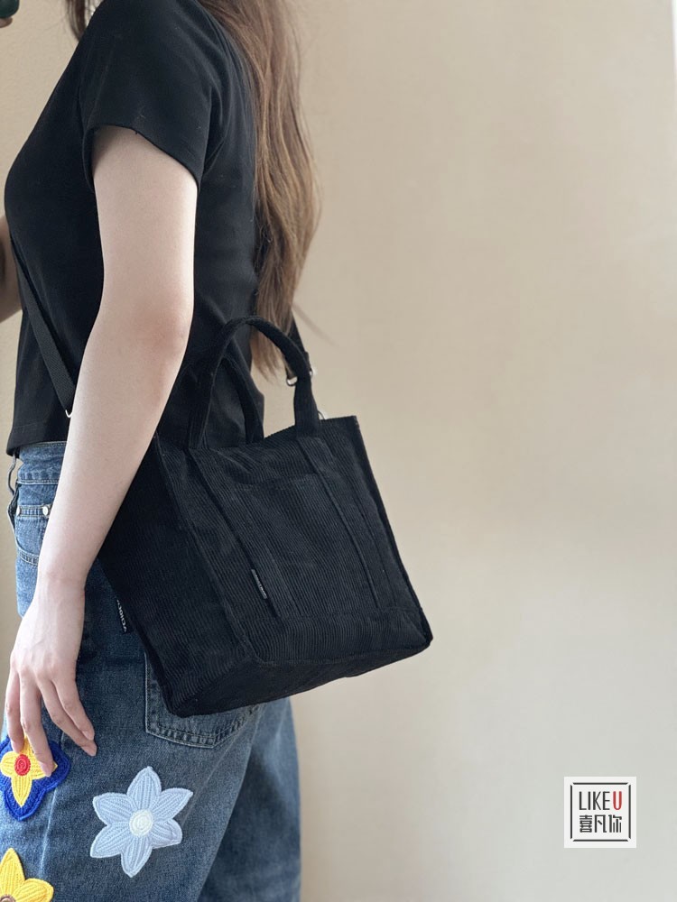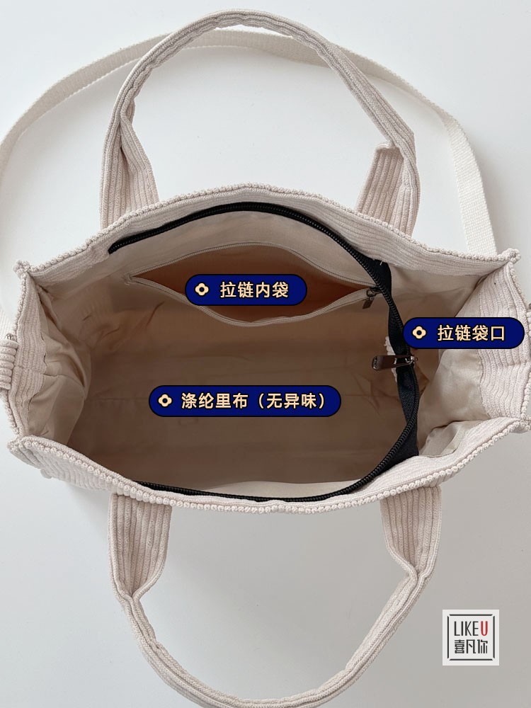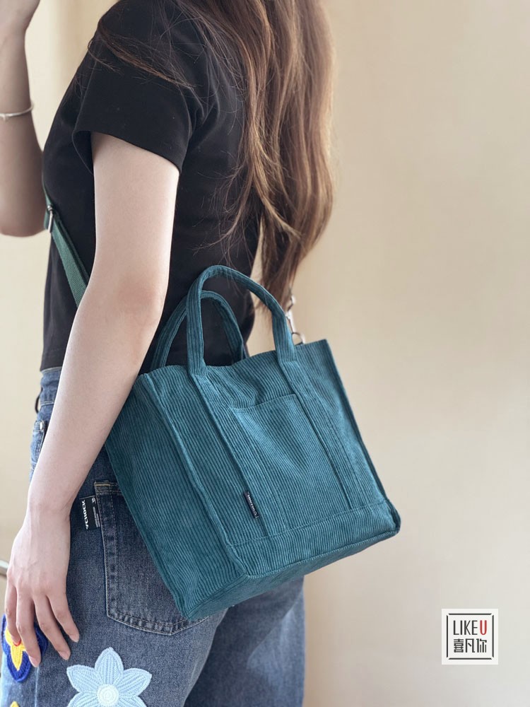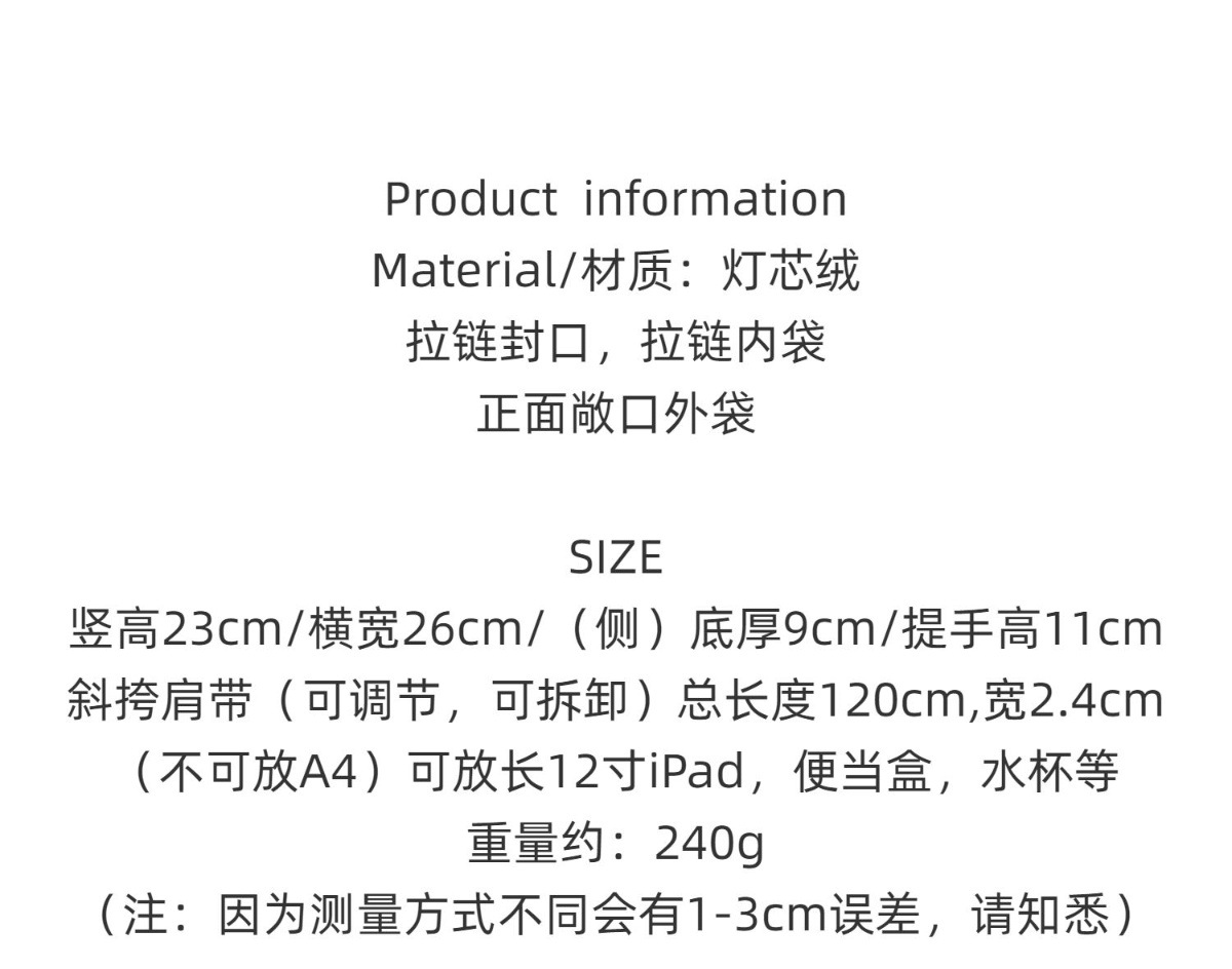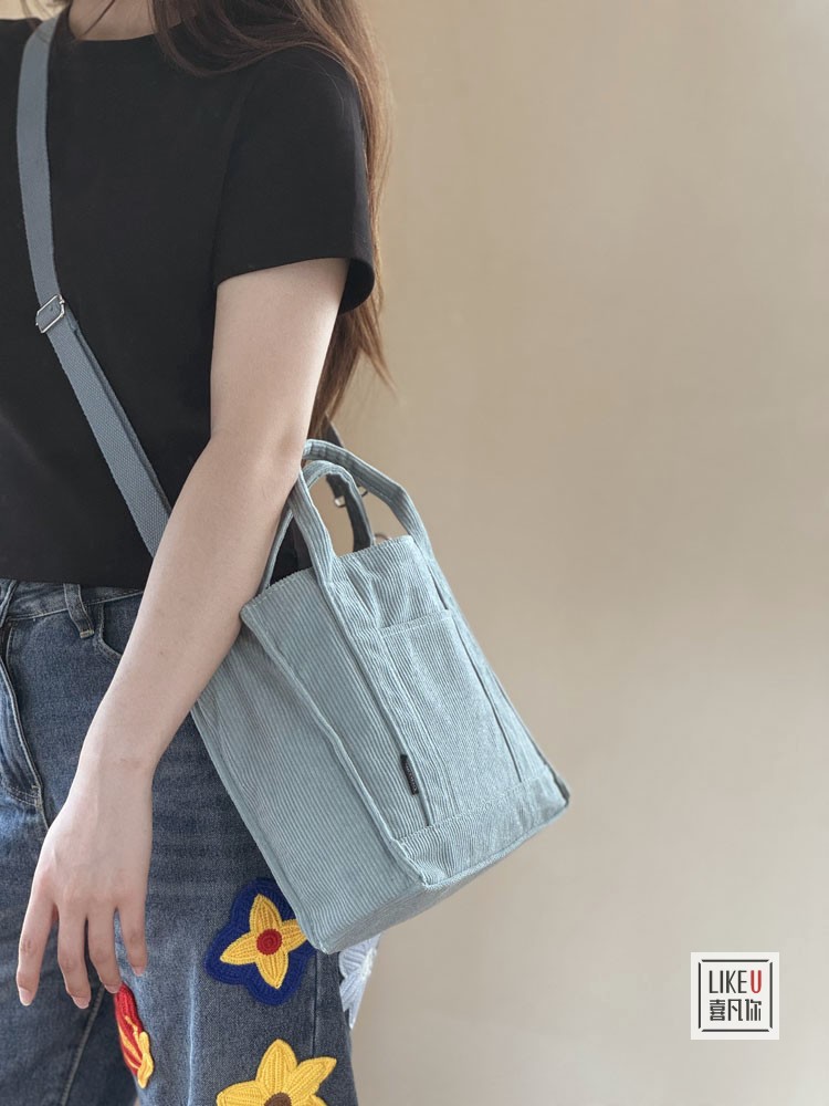 加厚复古文艺灯芯绒学生单肩斜挎托特简约休闲大容量通勤帆布包袋