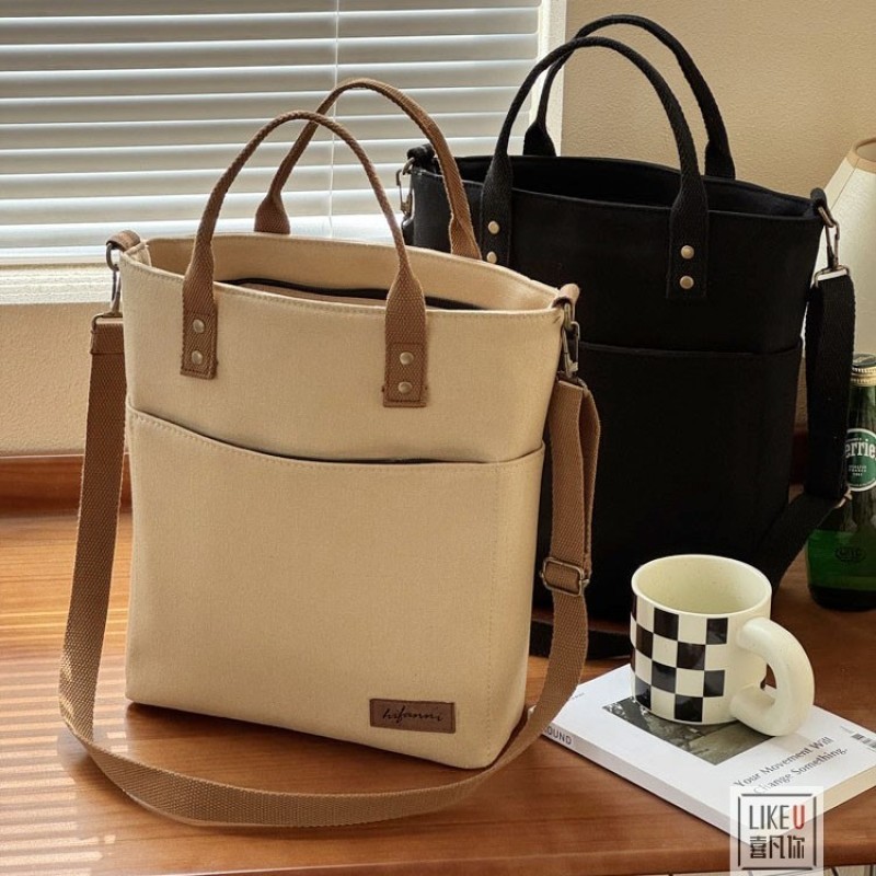 原创自制加厚有型简约百搭通勤帆布托特包休闲文艺学生手提斜挎包