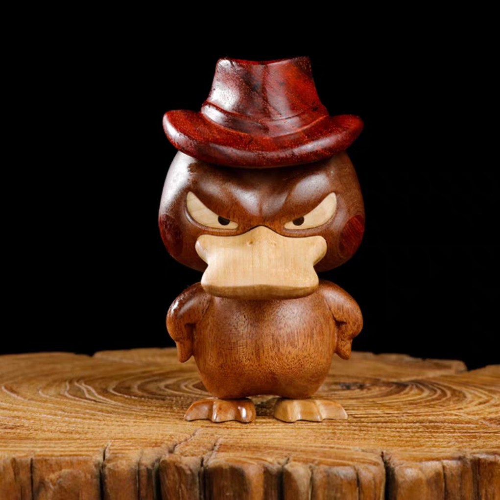 乌檀木宠物精灵愤怒可达鸭车载磁吸摆件治愈系飞升猪手机支架礼物