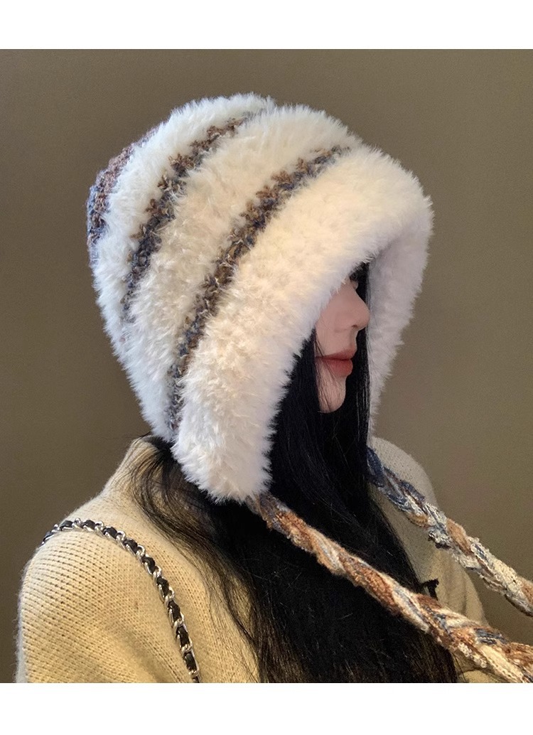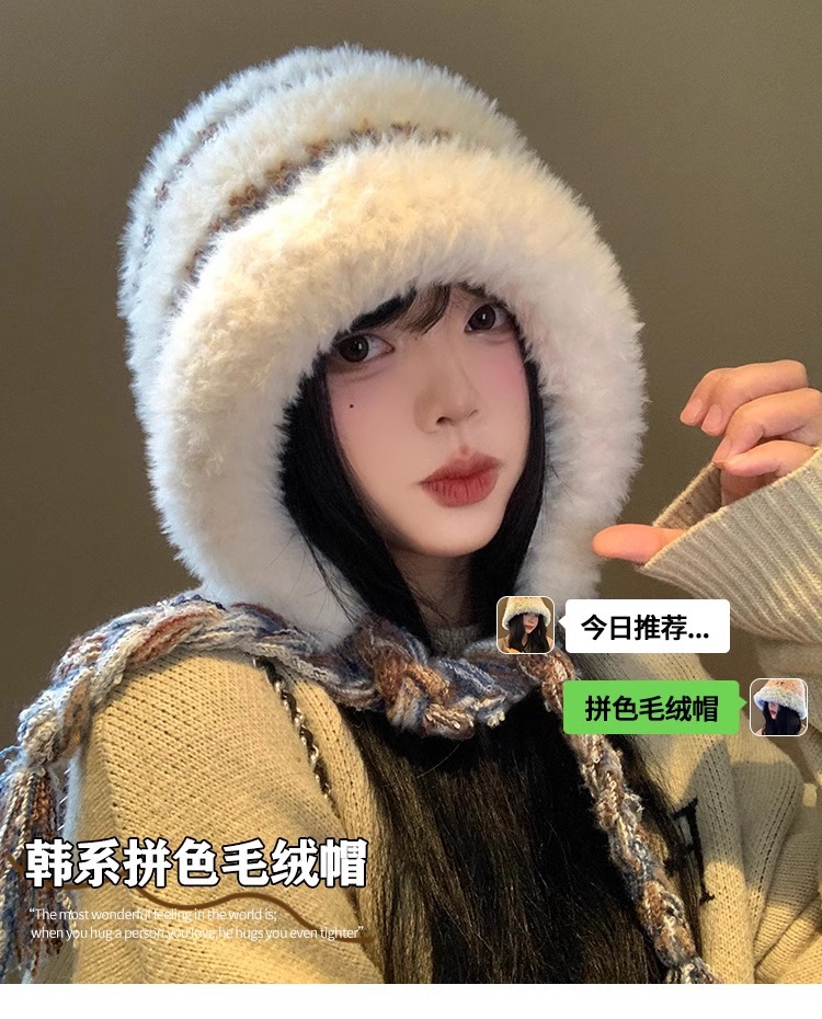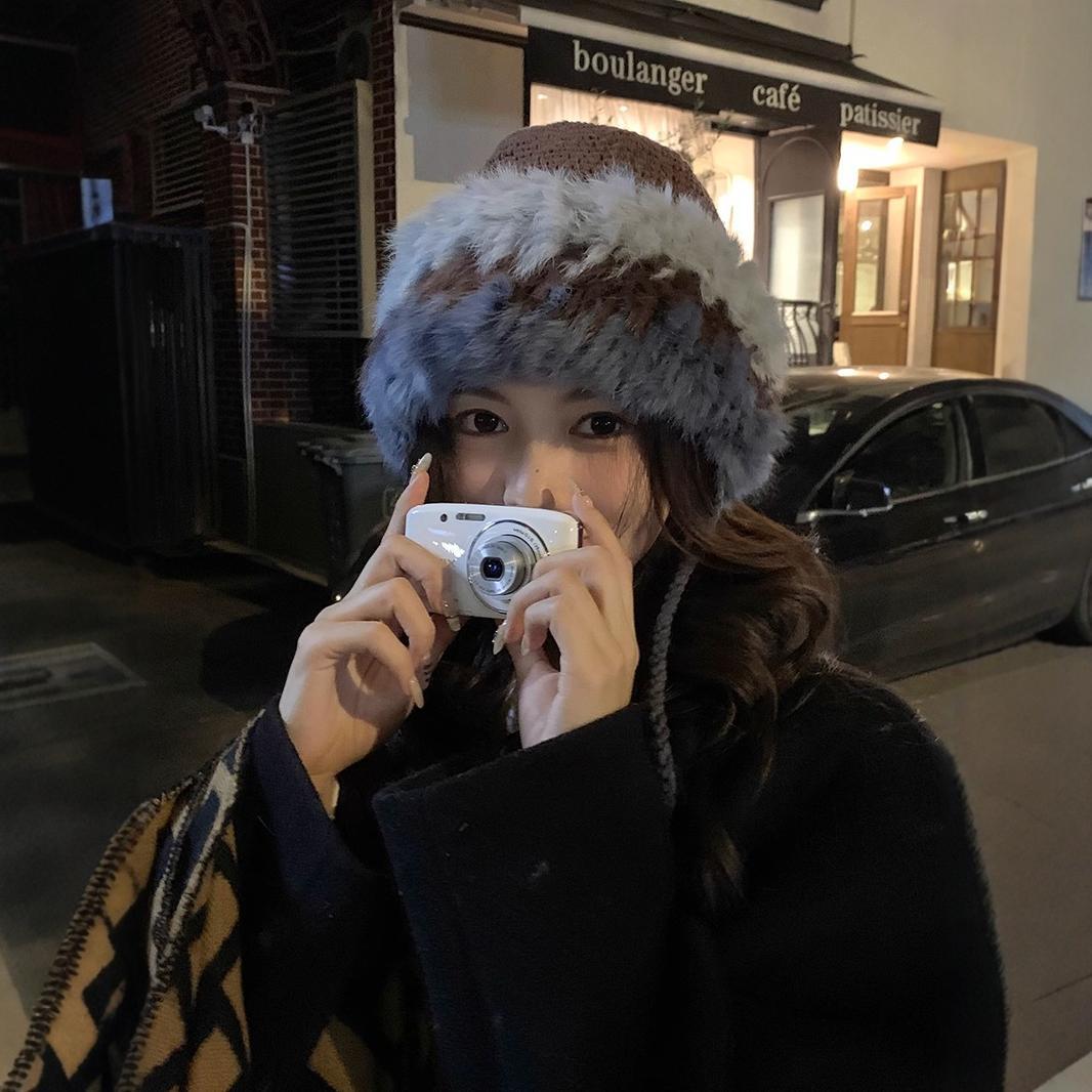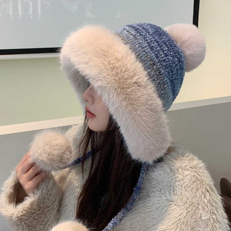 ぬいぐるみの漁師の帽子の女性は秋冬に顔を見せます。ウサギの毛は保温して耳の毛糸の帽子を保護します。