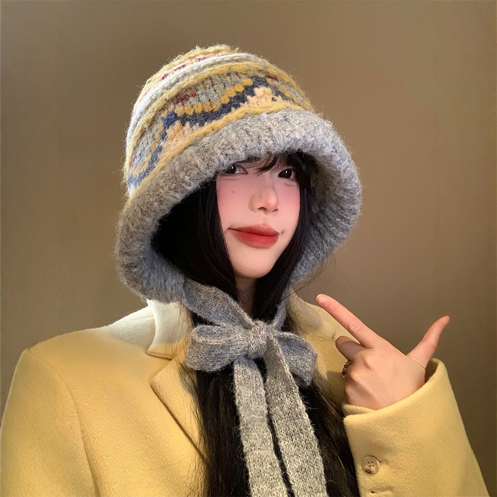 费尔岛复古针织巴拉克拉法帽女秋冬显脸小包头帽加厚保暖护耳帽子