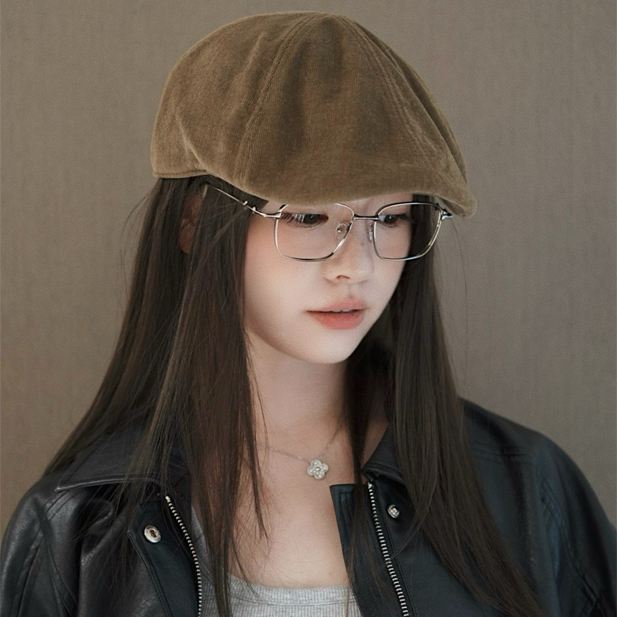 韩版2025秋季新款贝雷帽复古灯芯绒前进帽女文艺报童帽画家帽子潮