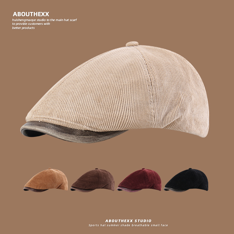 秋冬レトロコーデュロイ前進帽ファッション英倫風報童帽日系街頭文芸鴨舌帽子男女