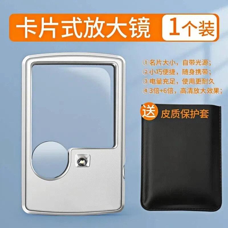 高齢者向け携帯拡大鏡、読書用、高倍率、カードサイズ、高精細LEDライト付き、携帯用、卸売、高齢者専用