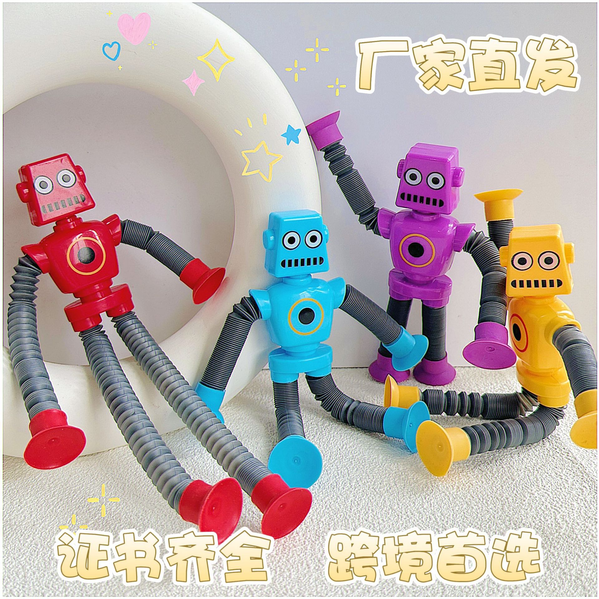 国境を越えた人気のさまざまな発光吸盤ロボット伸縮チューブおもちゃノベルティ減圧おもちゃ手作りメーカー卸売