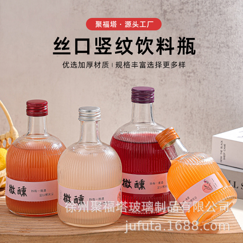 新款丝口竖纹饮料瓶透明加厚玻璃密封女士果酒甜酒青梅米酒分装瓶