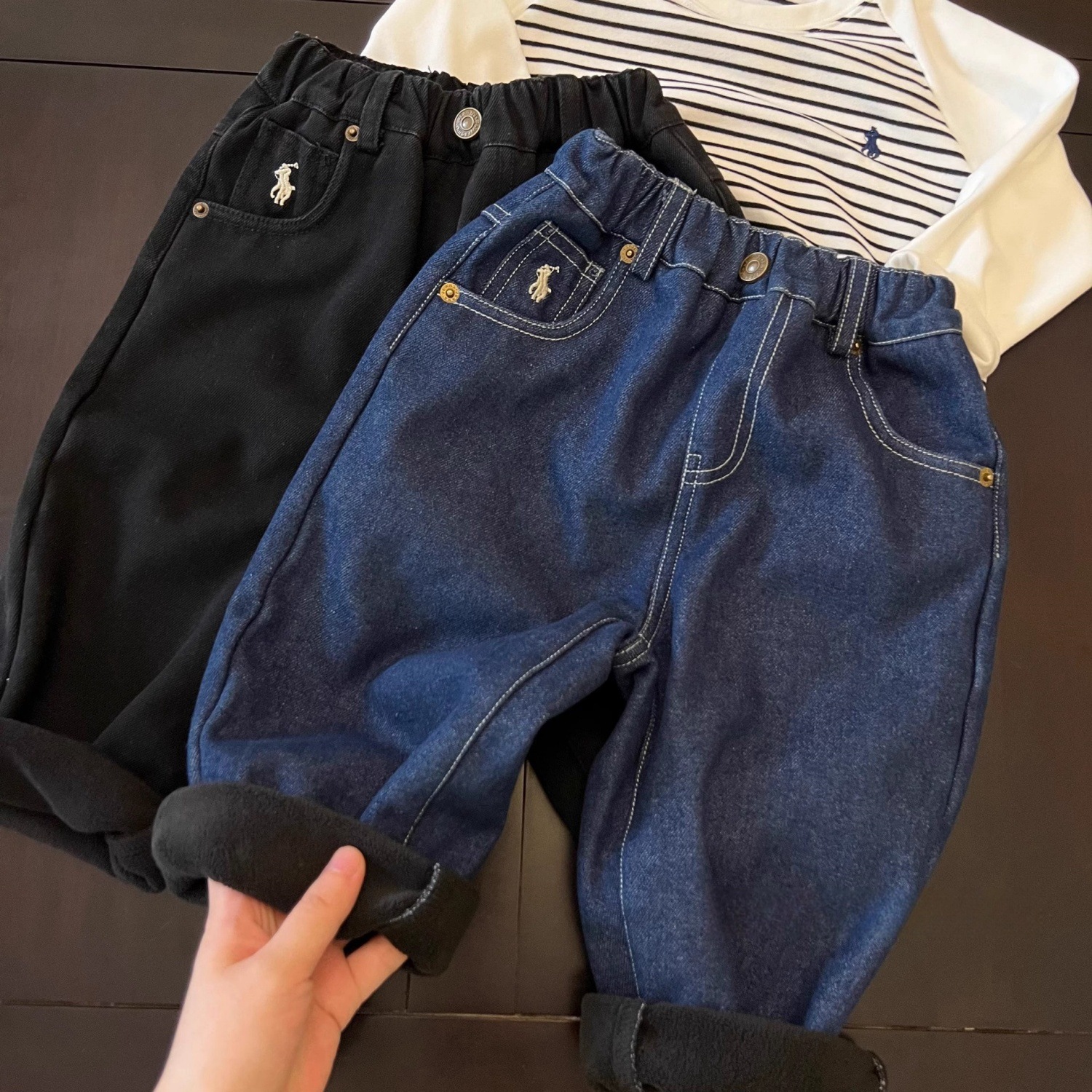 跨境儿童加绒牛仔裤2025秋冬男女童加绒牛仔裤宝宝一体绒保暖长裤