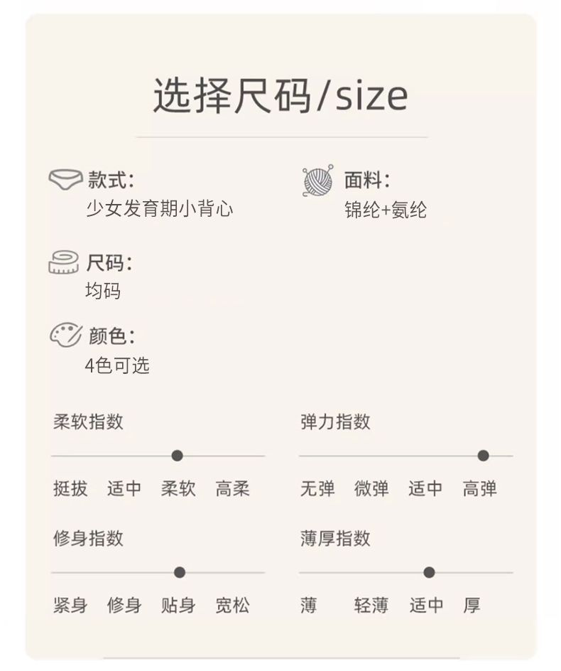 少女の発育期の下着の女子学生の中学生の小さいベストは鋼の輪がないです。