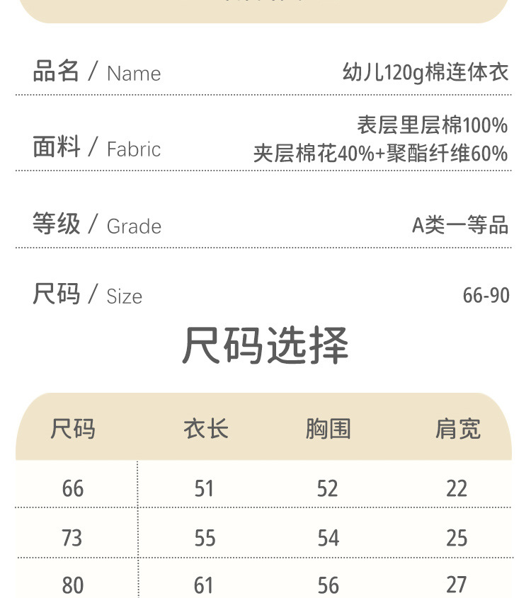 婴儿连体衣夹棉连体衣a类宝宝加厚棉衣冬季棉服婴儿冬季连体衣a类