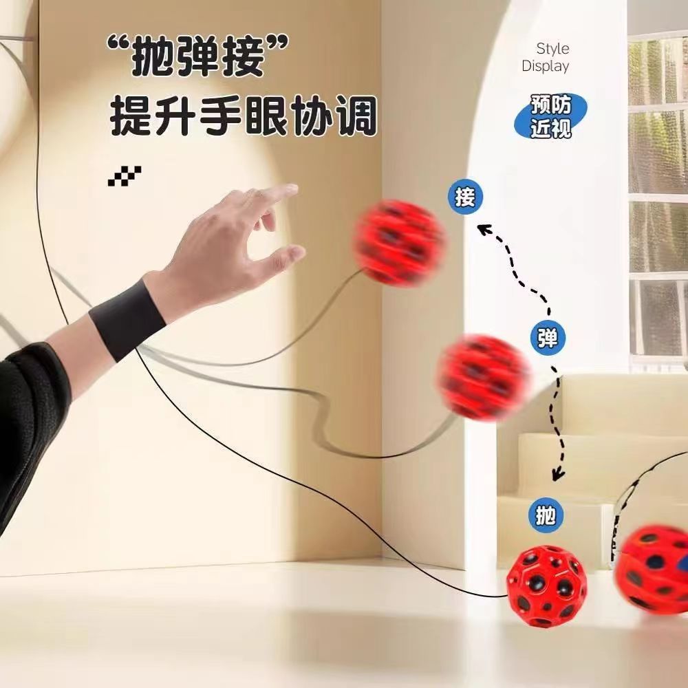手首の弾力ボールはひものゴムを持ってボールを投げます。子供のおもちゃの腕力ボールは手でボールを投げます。