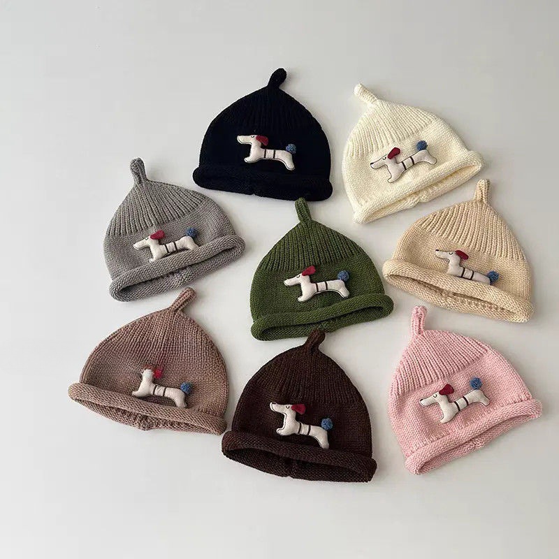 婴儿帽子秋冬季可爱超萌狗狗保暖奶嘴帽宝宝毛线帽