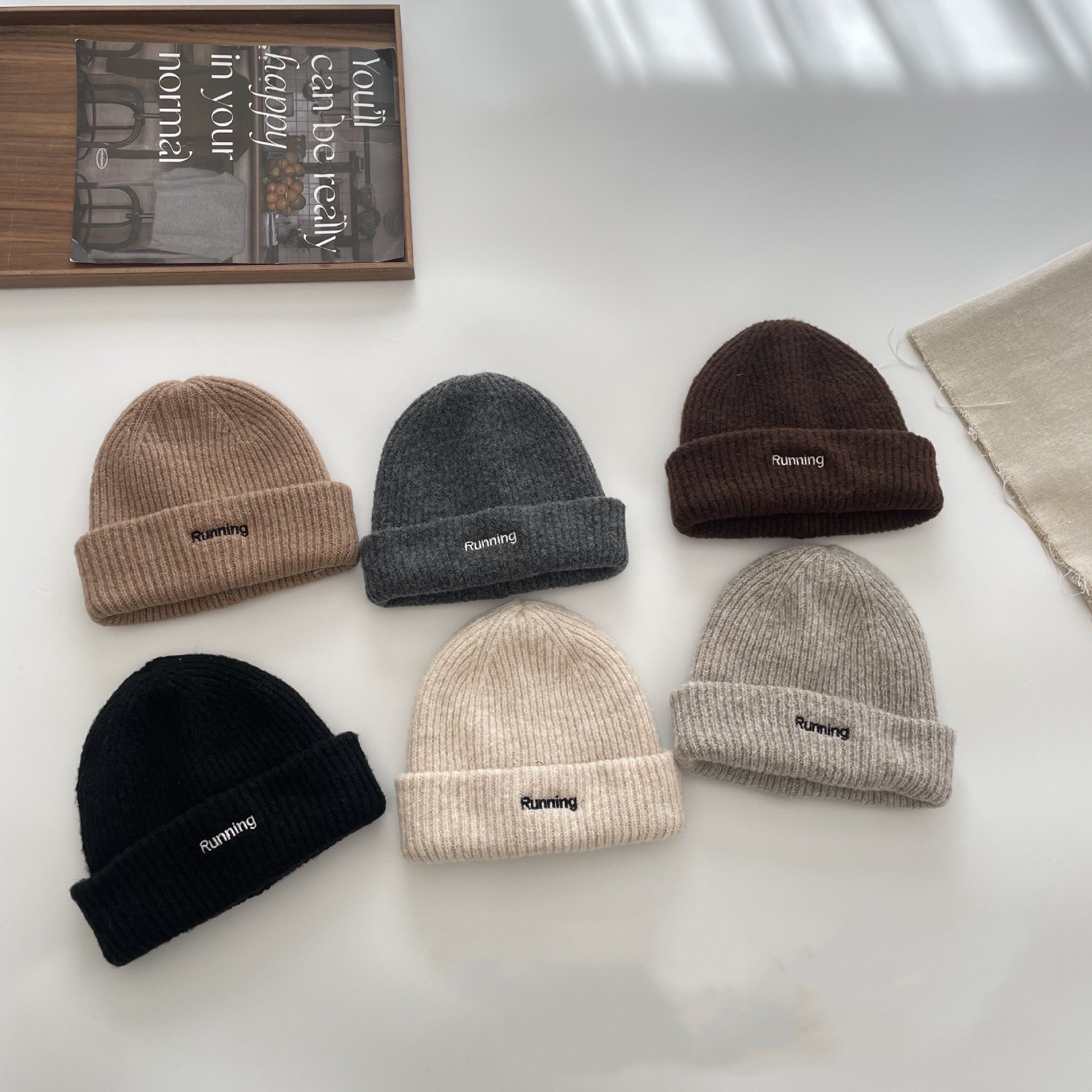 秋冬毛线帽子纯色保暖套头瓜皮帽百搭字母毛线帽户外骑车防风帽