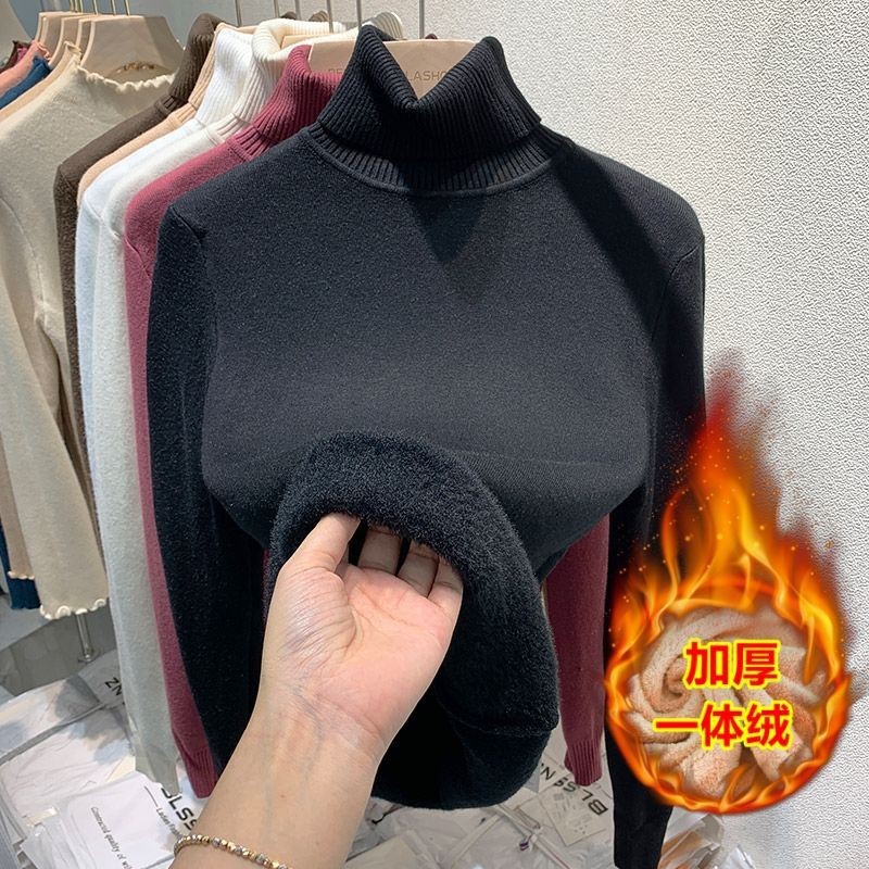 原版质量 一体绒高领毛衣女加绒加厚2025秋冬新款保暖长袖打底衫