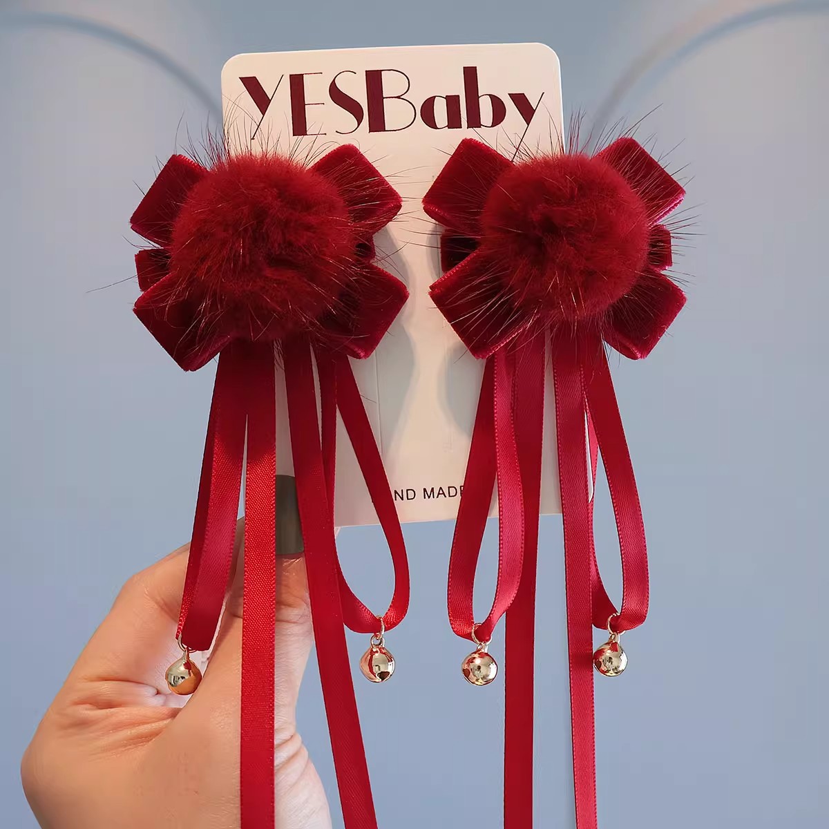 新年のお祝いの漢服のヘアピンの子供のかわいい毛玉のベルベットの蝶結びの国風のリボンは王女の髪飾りを挟みます。