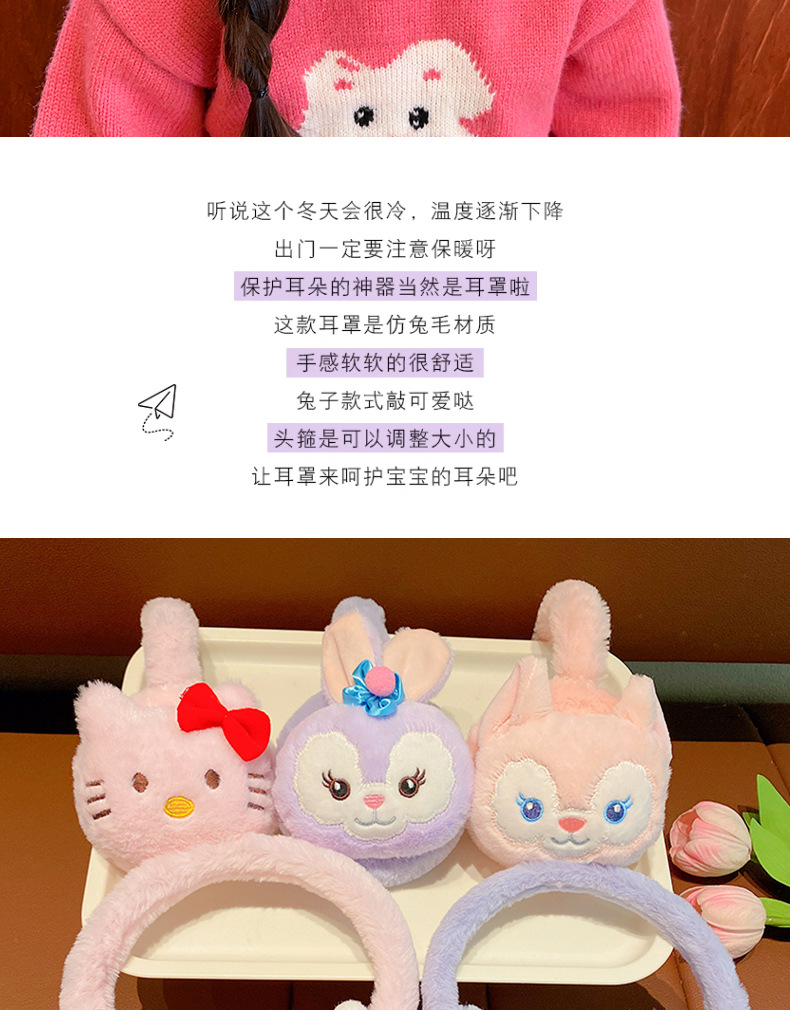 冬用耳あて、子供用サンリオラブブ漫画風可愛い耳あて、学生用防寒秋冬用ぬいぐるみ耳あて