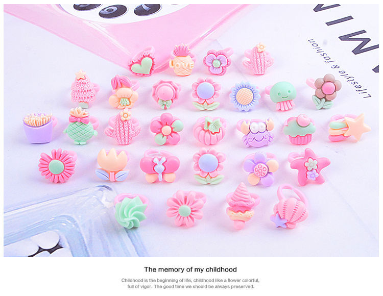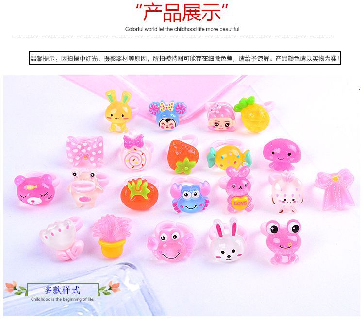 子供用リング漫画かわいいキャンディーカラーのプラスチック指輪幼稚園の子供たちのホリデーギフト小さな女の子のおもちゃ
