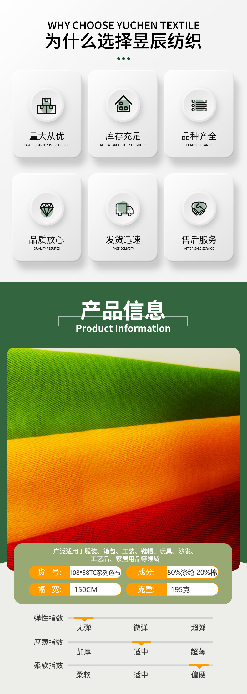 現物ポリエステル綿108*58綾tc布ポケット裏生地シャツバッグ生地複数色直供