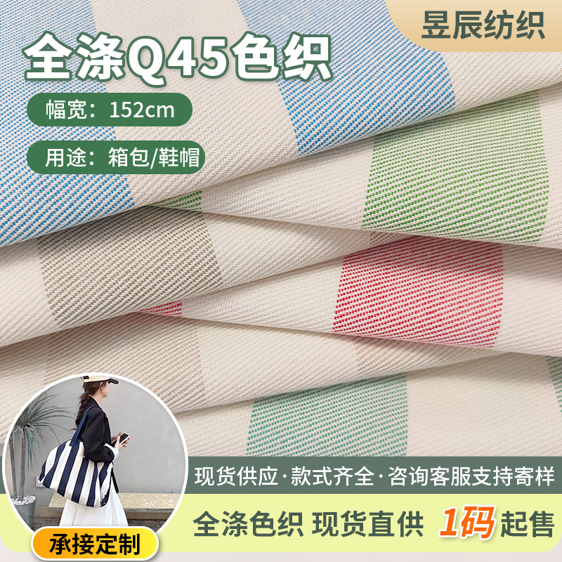 既製品の色織りポリエステル綿混紡ストライプジャカード生地、織物バッグ・靴材・シャツ生地、耐摩耗性・通気性のある玩具生地