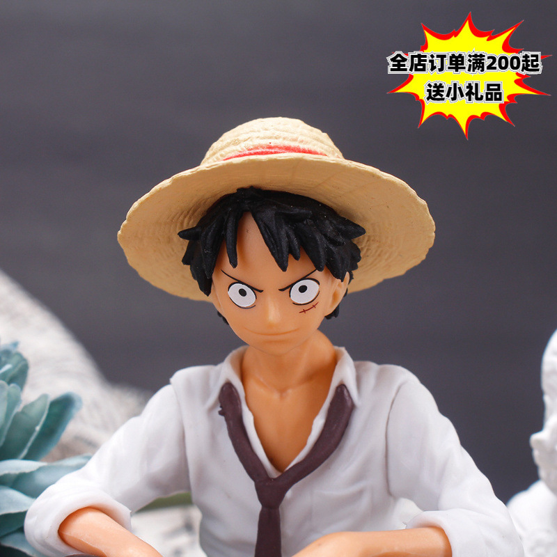 海賊座位ルフィフィギュアソリッドシャツ麦わら帽子ルフィ男モデル装飾品