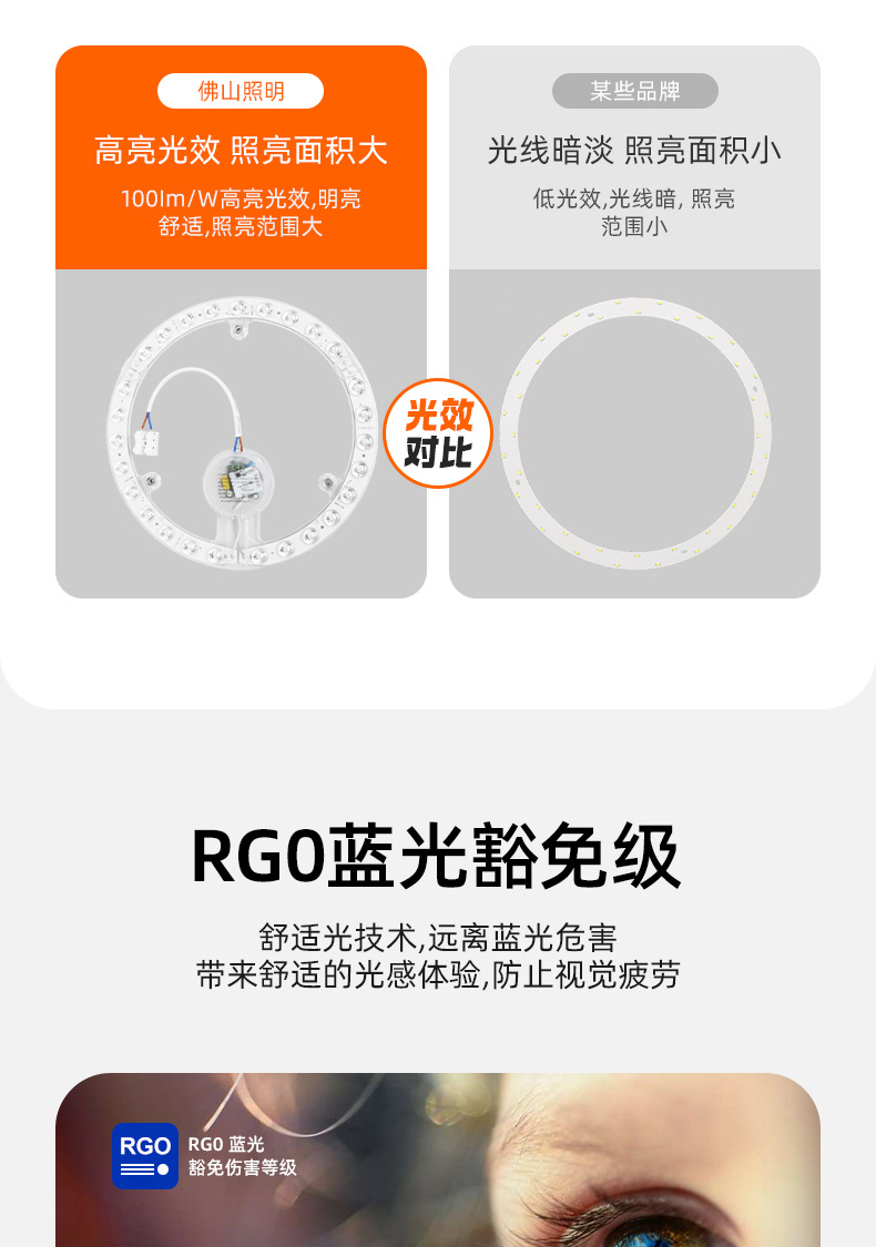 佛山照明led全スペクトル天井灯芯円形改造交換光源モジュール磁石吸着三色光