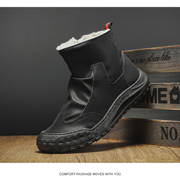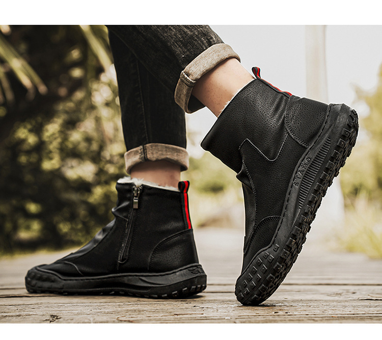 冬季加绒马丁靴男鞋新款高帮工装鞋子男防滑耐磨加厚保暖棉鞋短靴