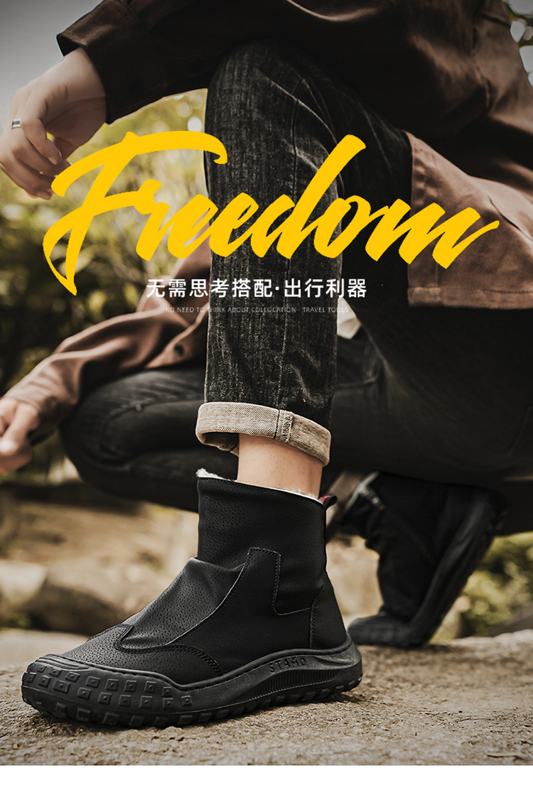 冬季加绒高帮马丁靴男士工装鞋潮流百搭加厚保暖棉鞋防滑劳保鞋男