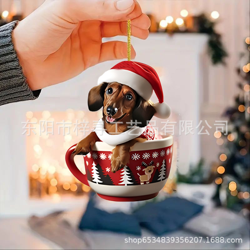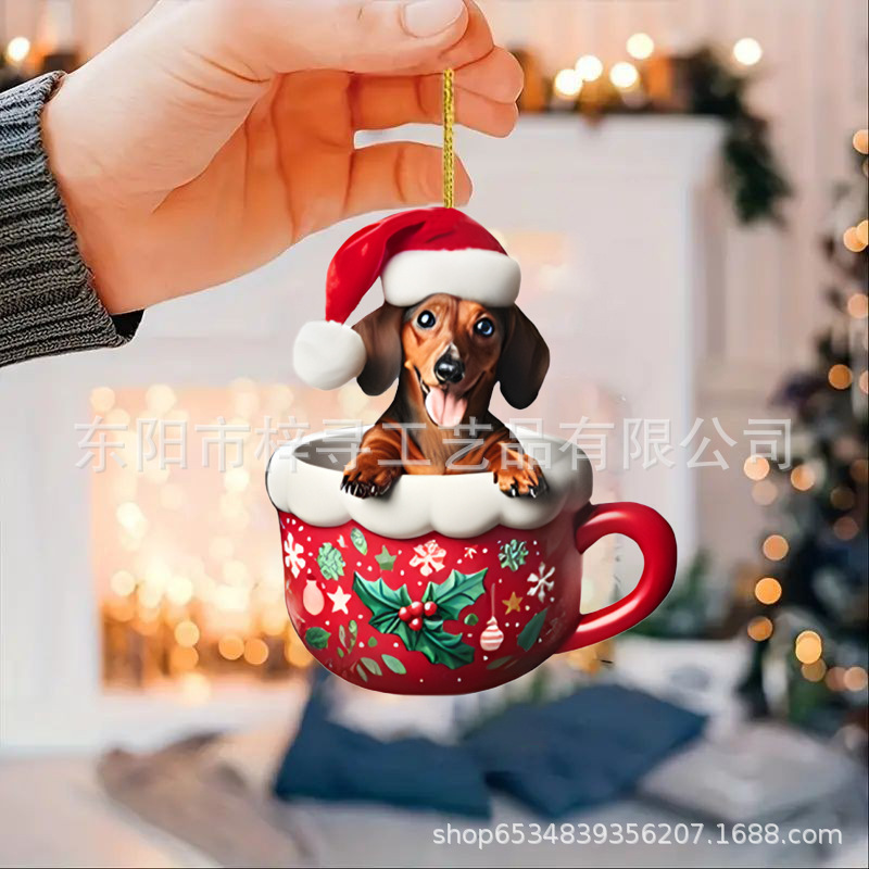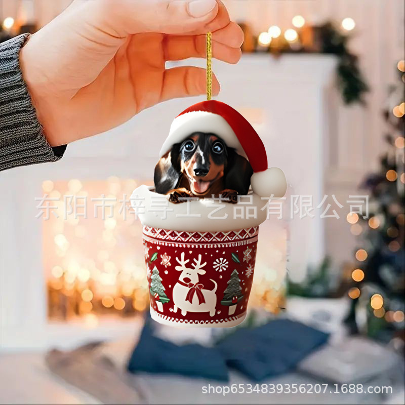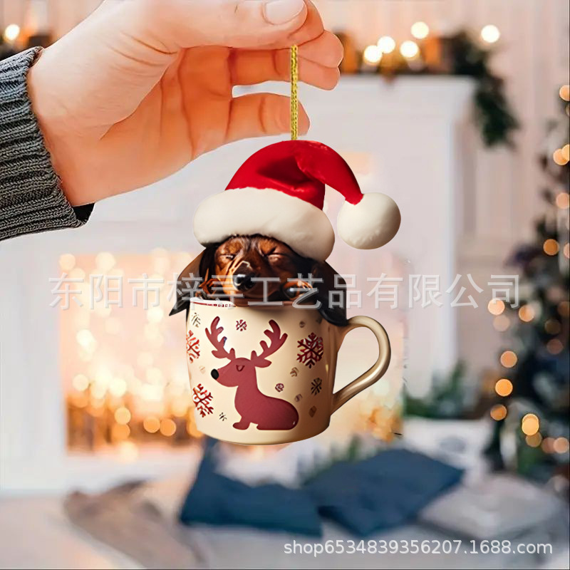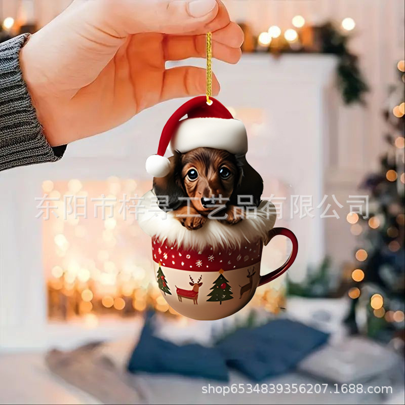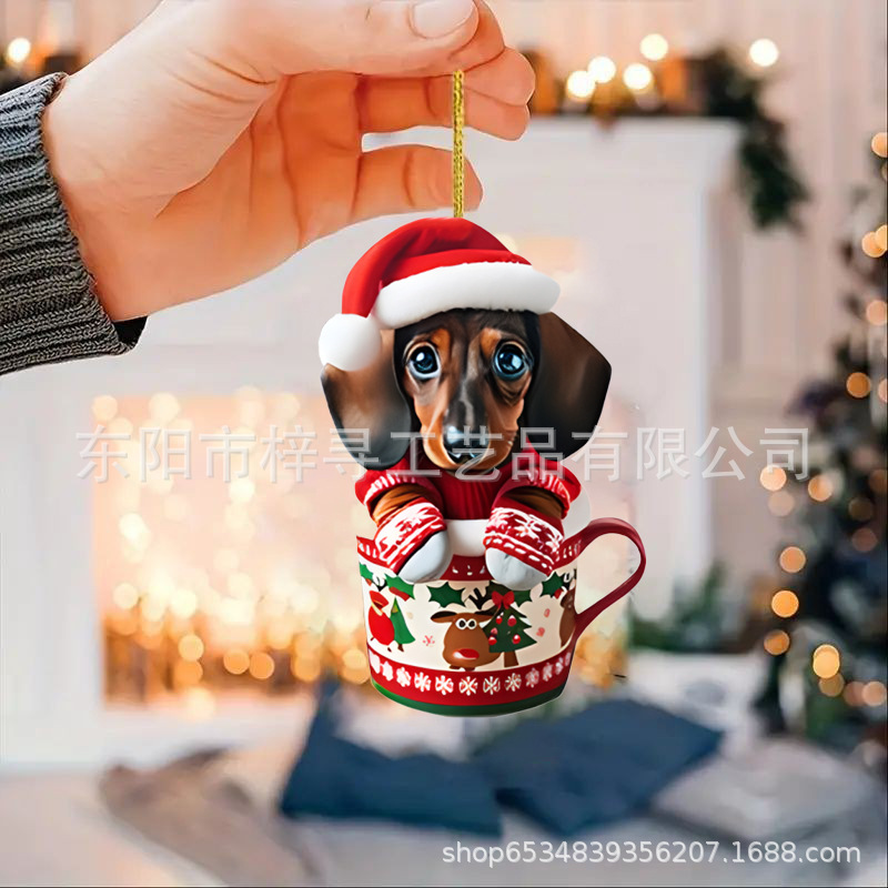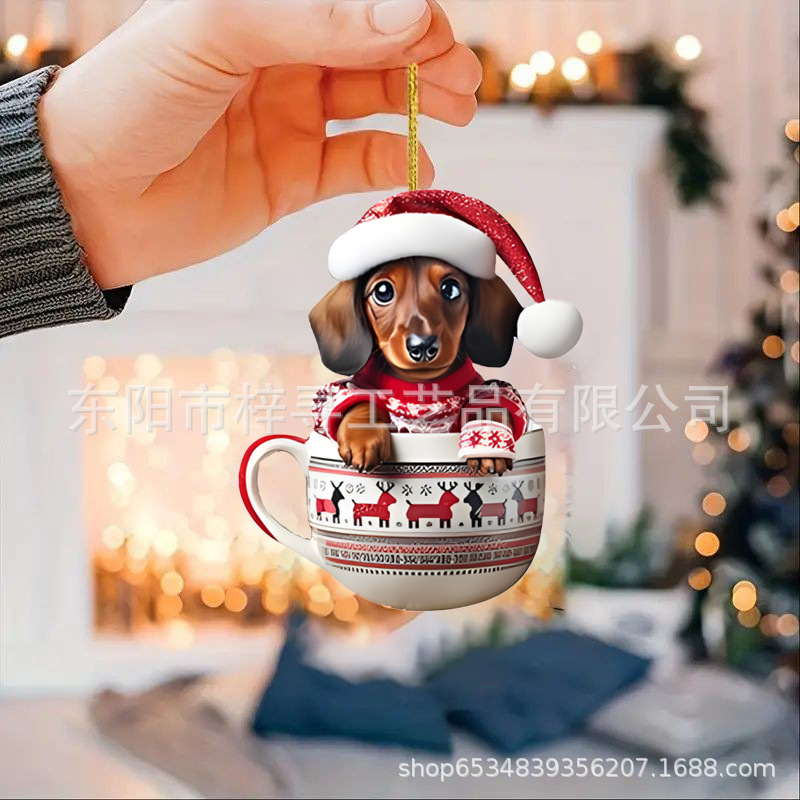 国境を越えた新しいクリスマス車ストラップ実用アクリルストラップミニ子犬形自動車吊りおもちゃ