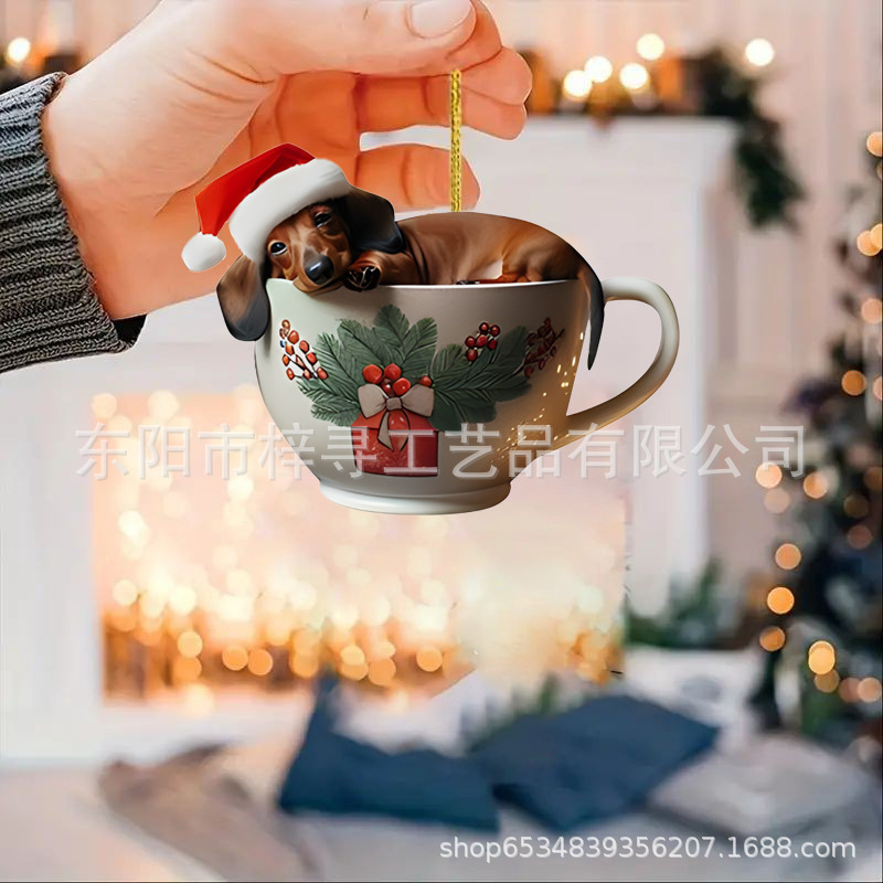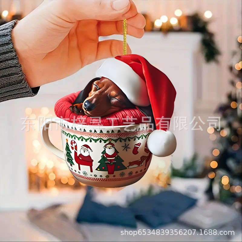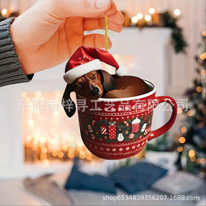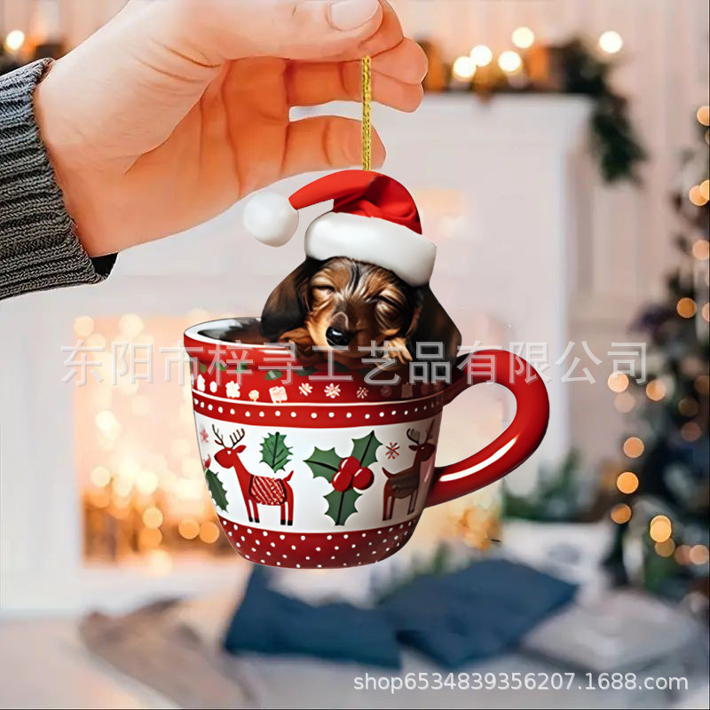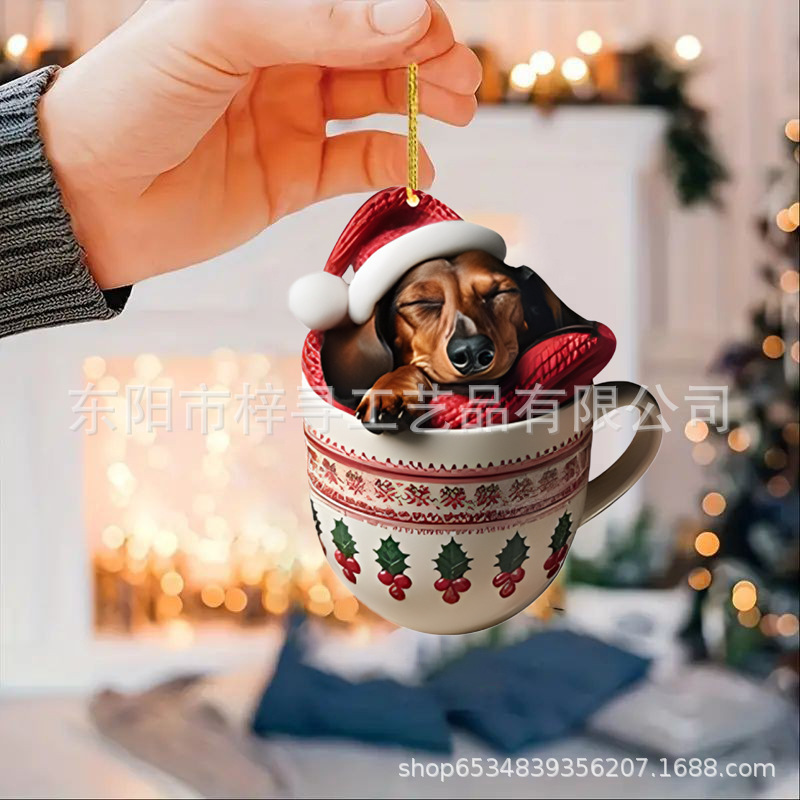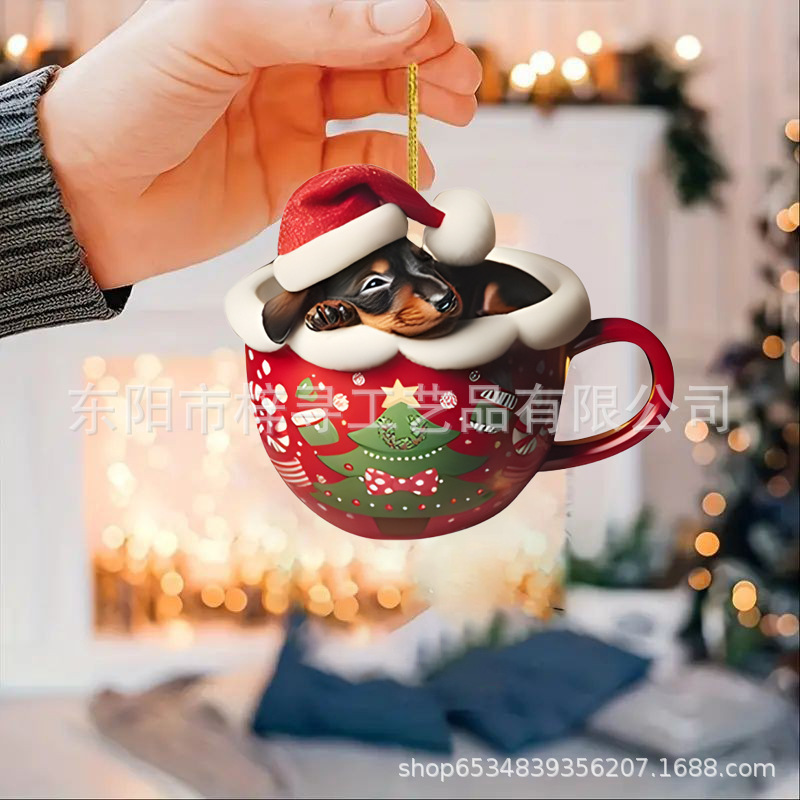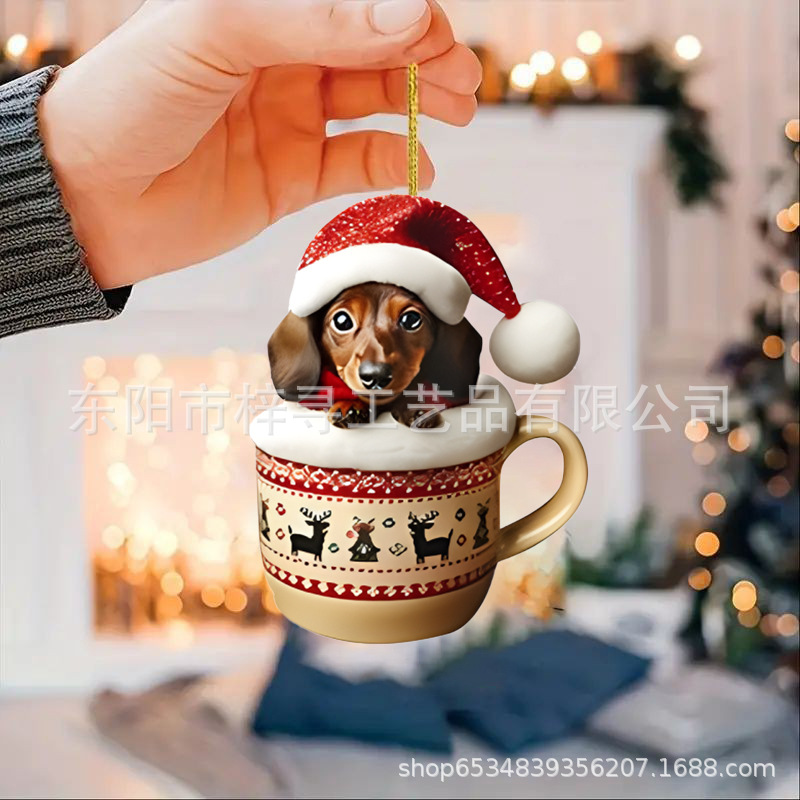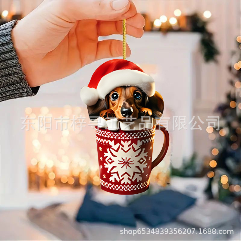 国境を越えた新しいクリスマス車ストラップ実用アクリルストラップミニ子犬形自動車吊りおもちゃ