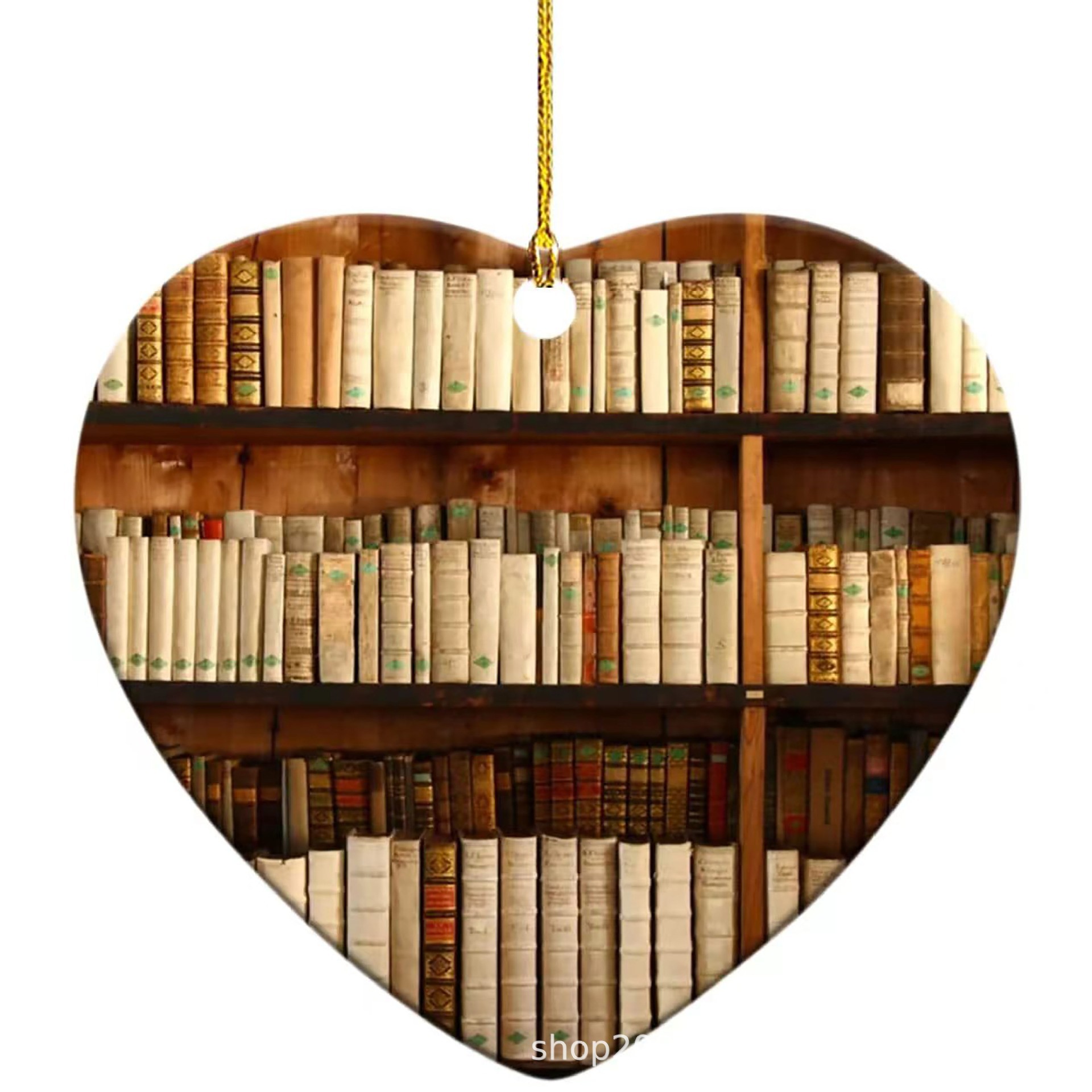 Book Lovers ハートオーナメント アクリル フラット ラブ ペンダント 本棚 タグ クリスマスツリー