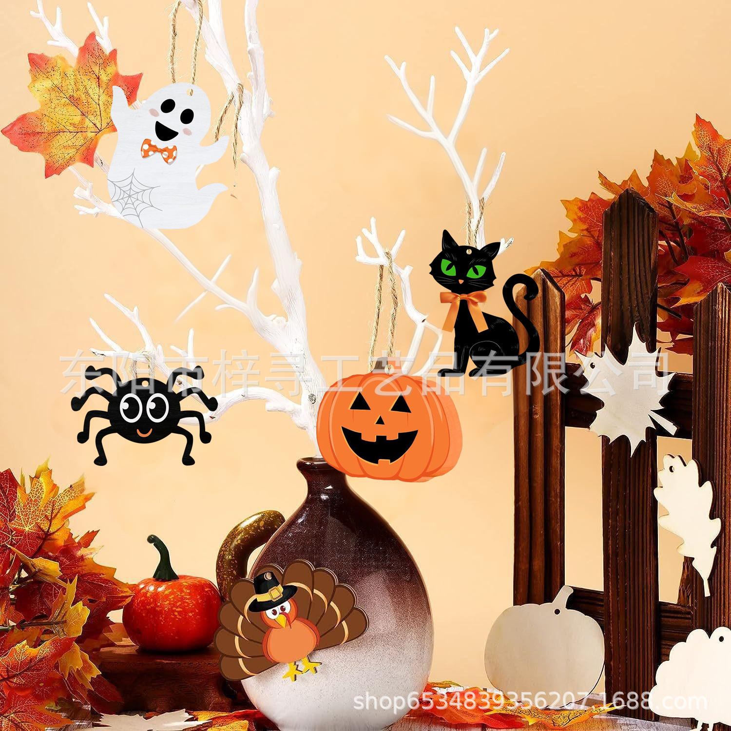 国境を越えた売れ筋の秋の感謝祭木製ハロウィントレイ立体装飾品ホリデーデコレーションハンギングタグクリエイティブでかわいい