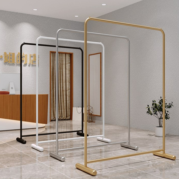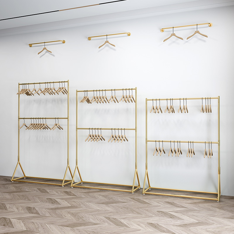 洋服店展示棚床置き式金色男性婦人服店棚陳列シンプル児童服店鉄芸ハンガー