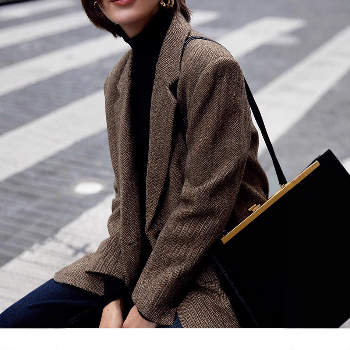 预售秋冬羊毛呢西装外套女春季新款复古休闲设计感上衣