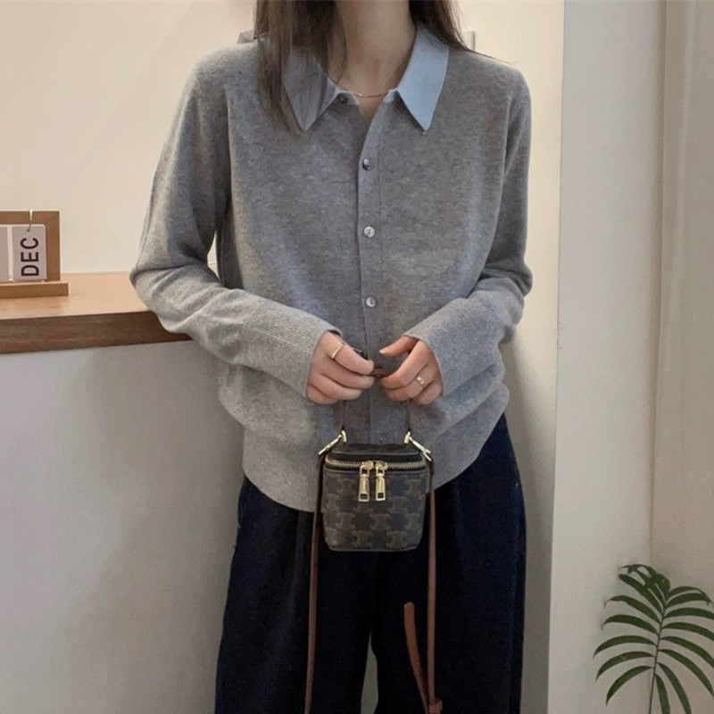 100純ウール小vネック長袖カーディガン2025春秋新作ニットセーターソフトモチモチ気質コートブーム