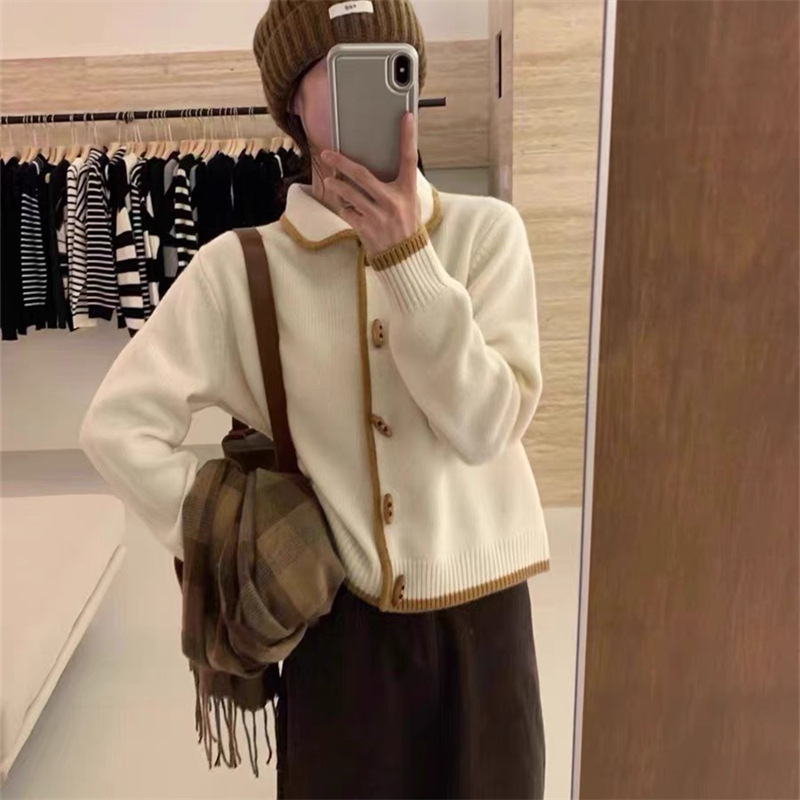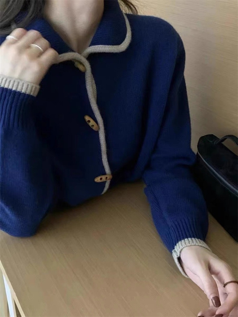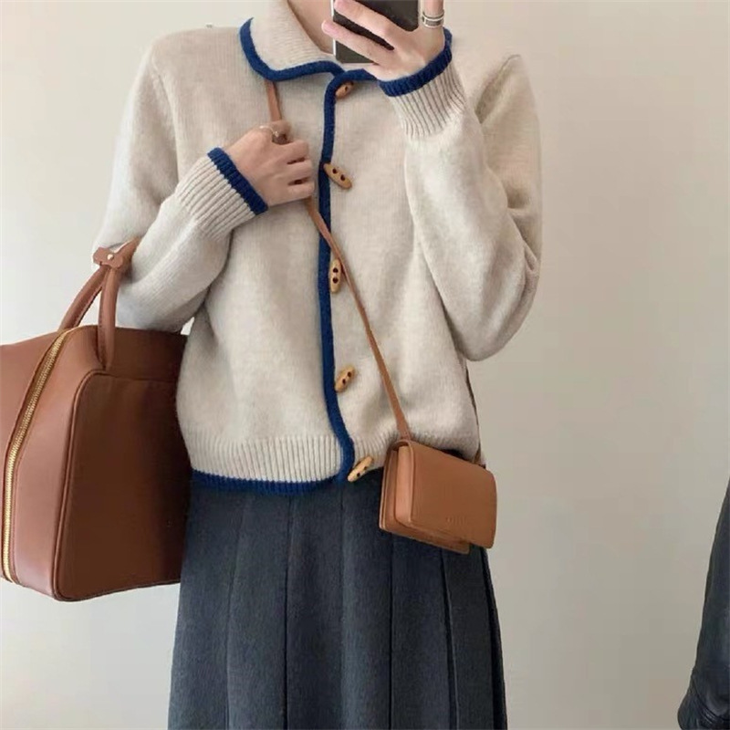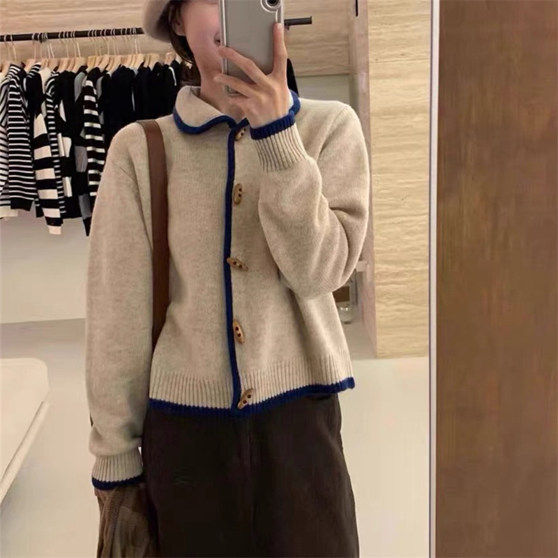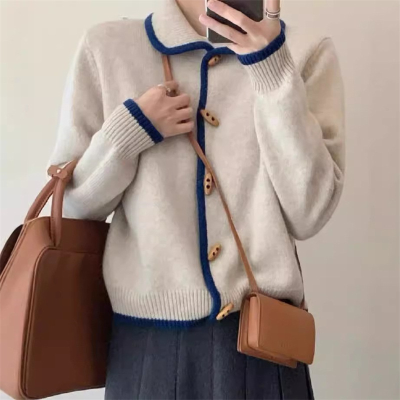 優しい風合いの襟付き角ボタンニットウールカーディガン レディース カシミヤ 秋冬新作 韓国風 ソフトなセータージャケット