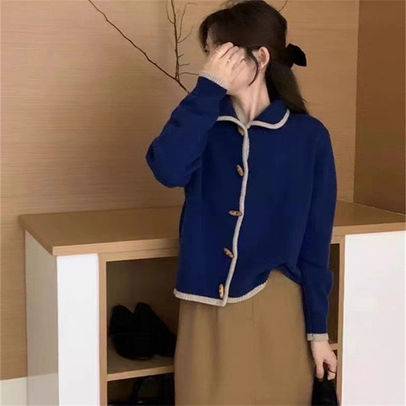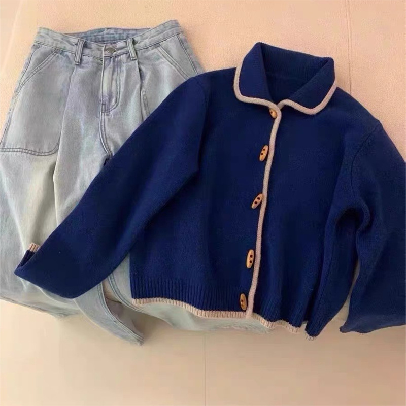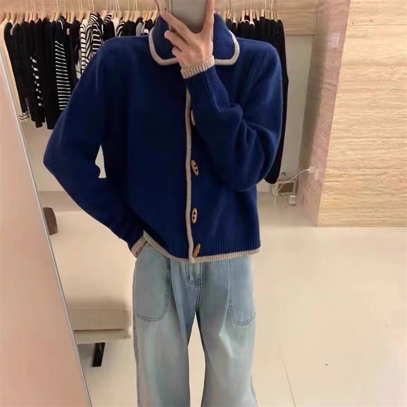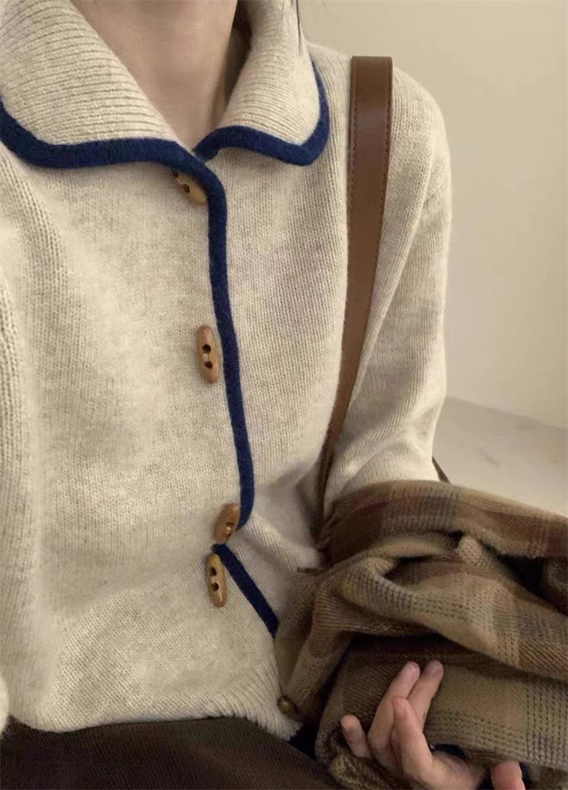 優しい風合いの襟付き角ボタンニットウールカーディガン レディース カシミヤ 秋冬新作 韓国風 ソフトなセータージャケット
