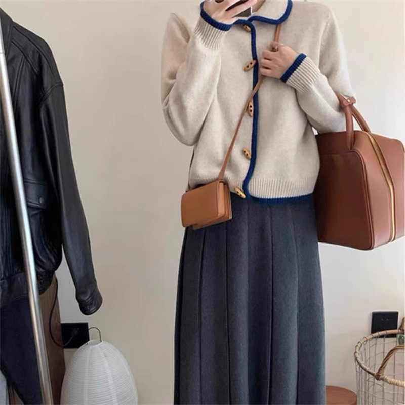 コントラストカラーカーディガン女性用 100% ソリッドカラーウール 2025 秋韓国スタイルニットセーターラウンドネックカシミヤ厚手セータージャケット