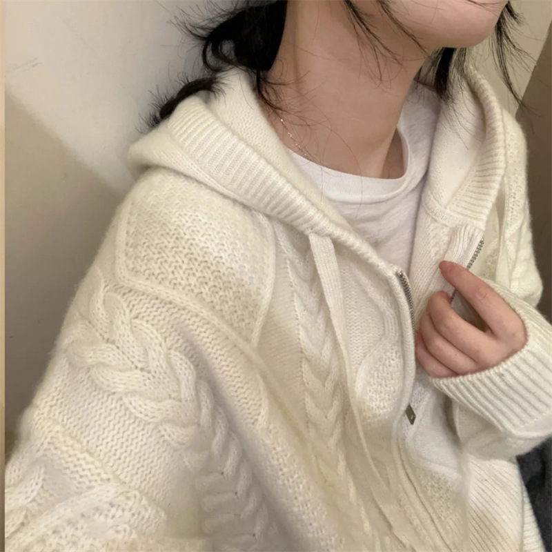 2025韓国版秋冬ウールカーディガン女性コート麻花丸首厚手純色セーターカシミヤニット外付け