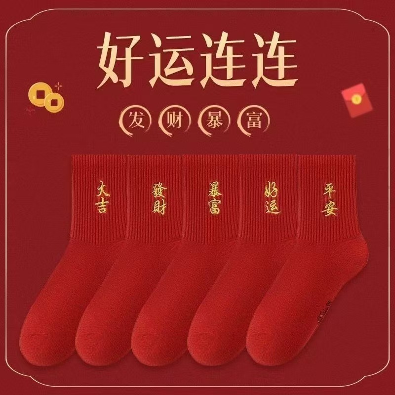 靴下男女秋冬本命年赤通気快適靴下中筒百合レジャー新年幸運大紅靴下